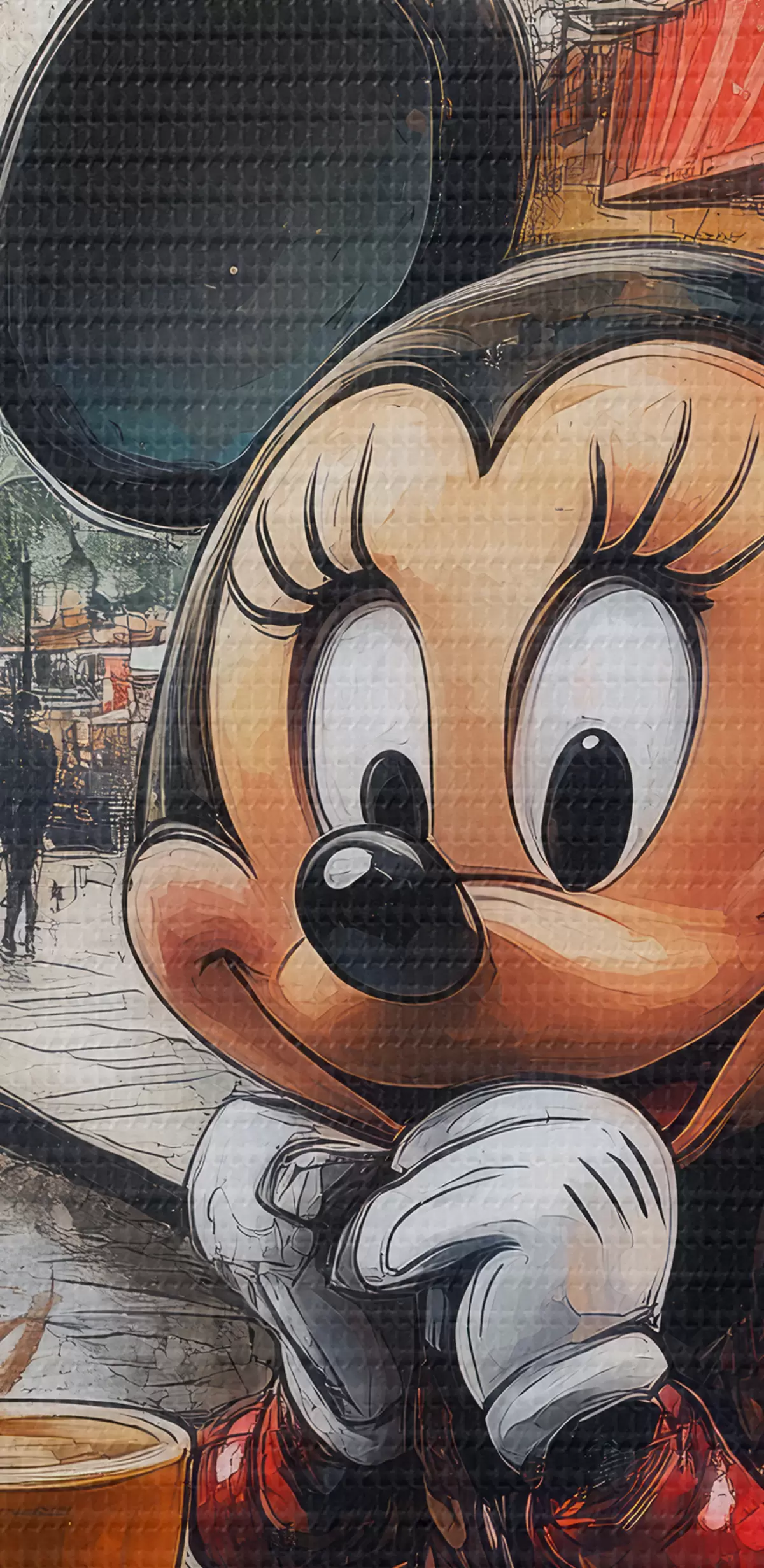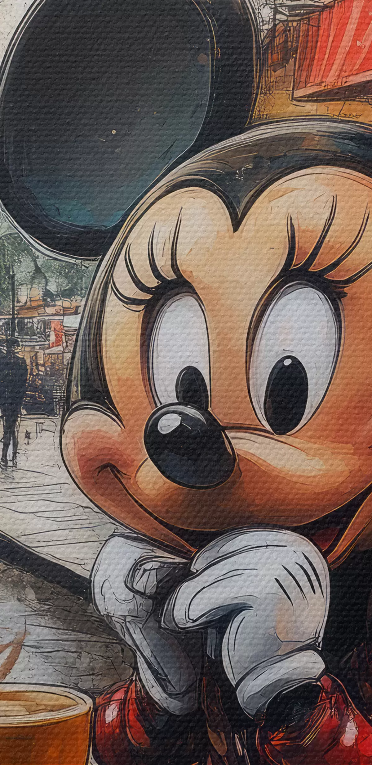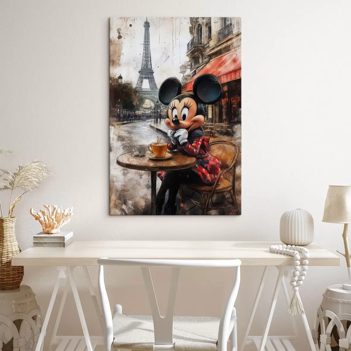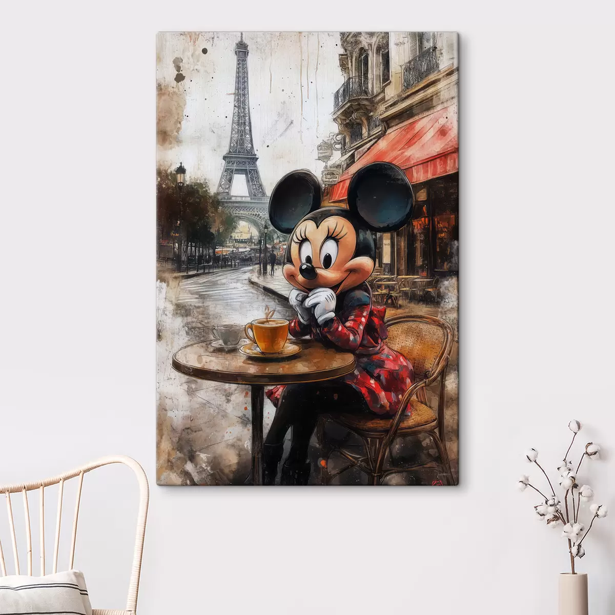 Obraz Dievča Mickey Mouse pije kávu na pozadí Eiffelovej veže v Paríži Nr. s40972