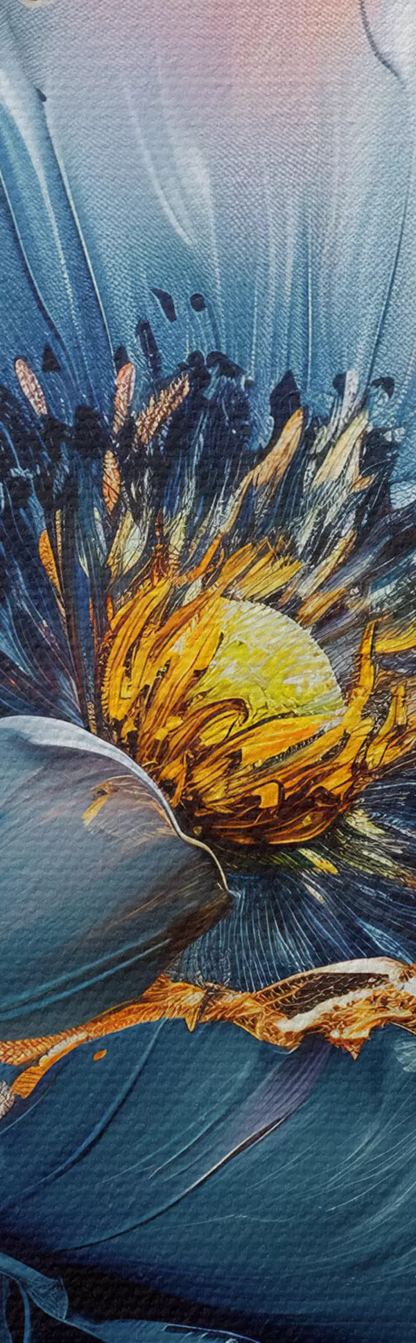 Obraz je možné zavesiť ihneď po jeho prevzatí. Obraz bude napnutý na drevených nosidlách so šírkou 2 cm.
