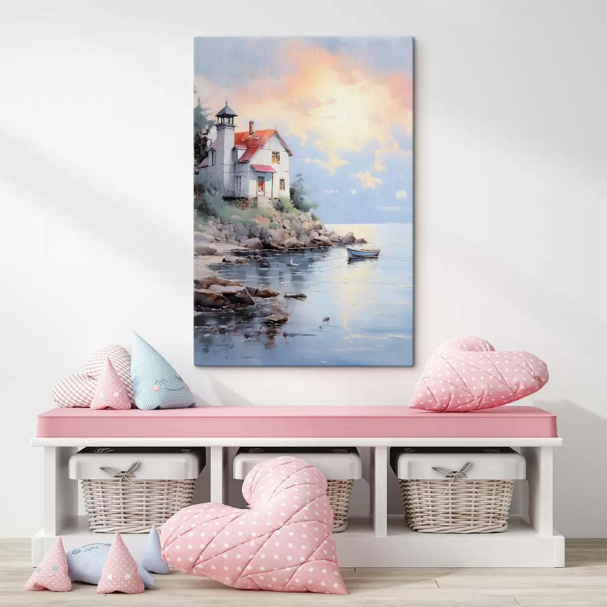 Obraz Dom na pláži pri mori pri západe slnka Nr. s41010