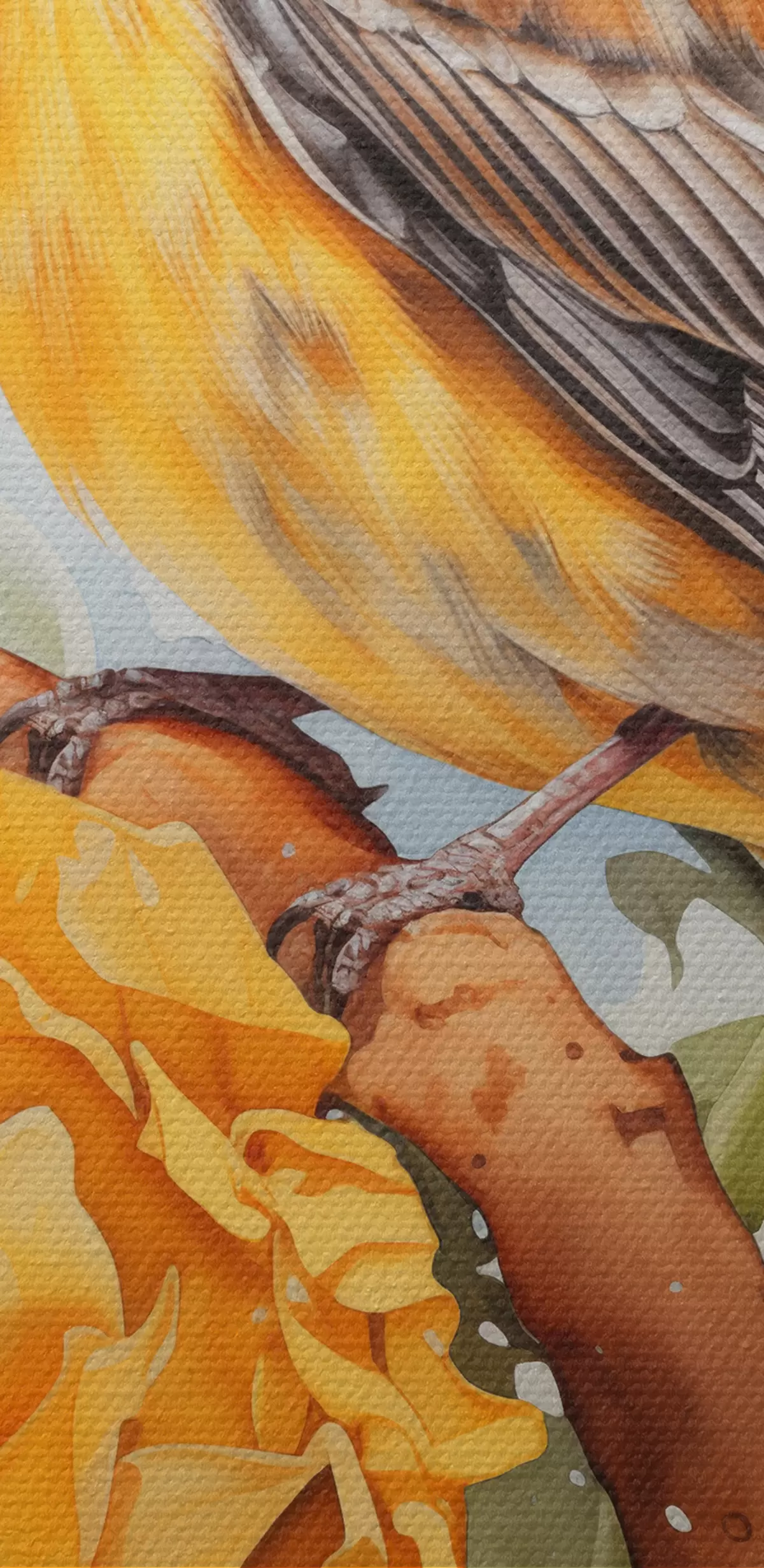 Obraz Žltý vták sediaci na slnečnici akvarel Nr. s41015