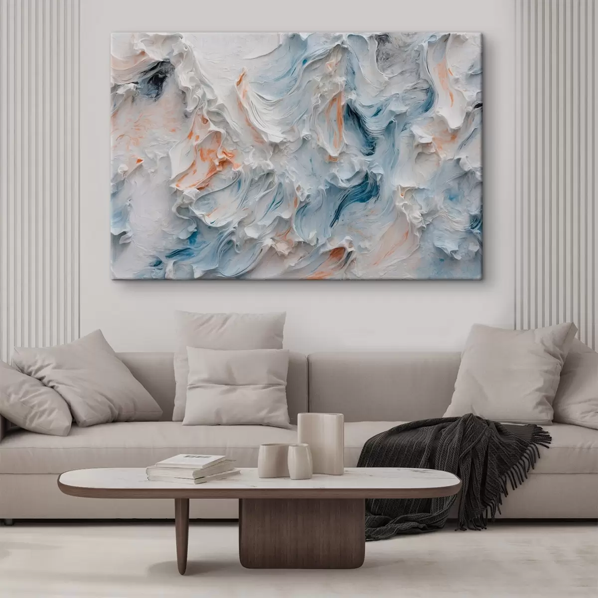 Obraz Abstrakcia s bielou, oranžovou a modrou farbou Nr. s41026