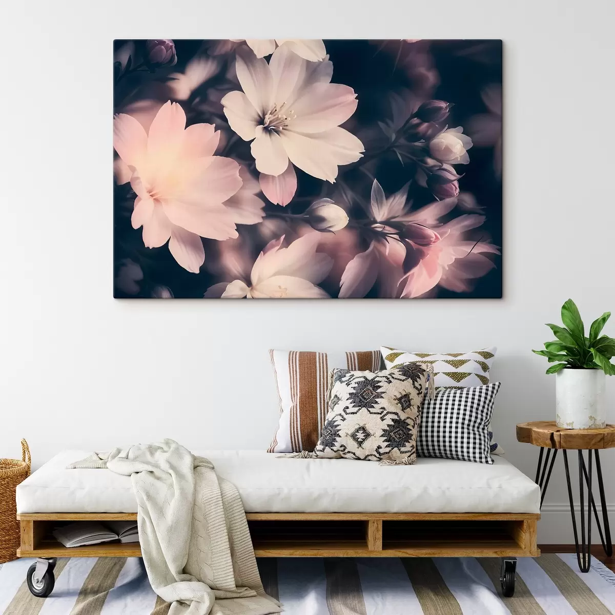 Obraz Mäkké ružové a biele vintage ľahké kvety s rozmazaným pozadím Nr. s41084