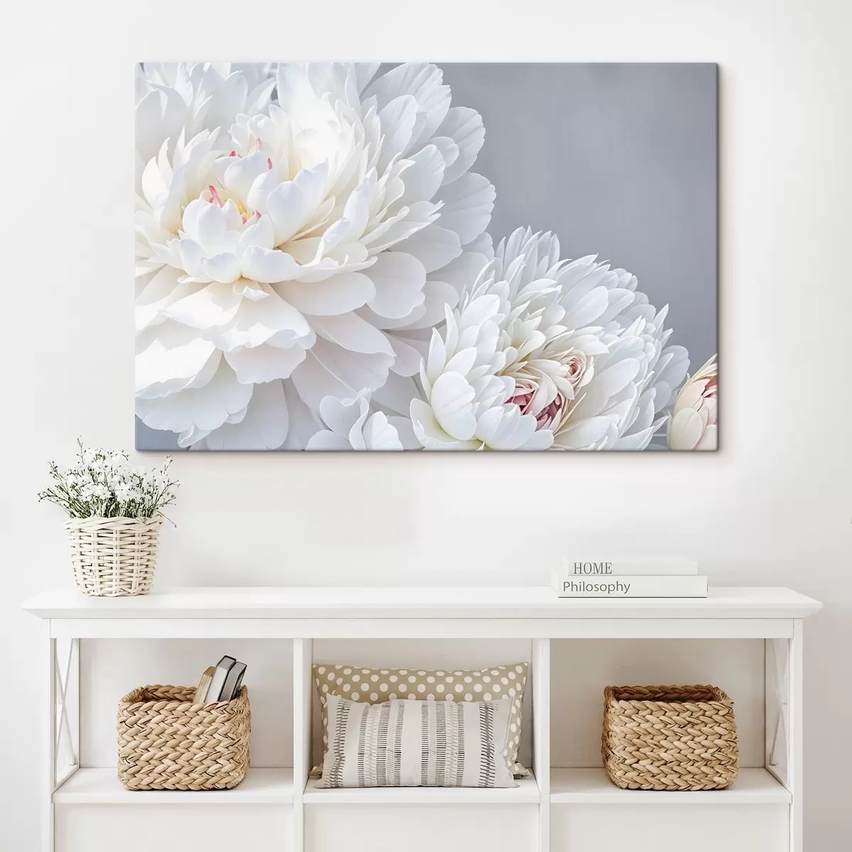 Obraz Biele kvety pivónie s jemnými okvetnými lístkami na svetlosivom pozadí Nr. s41085