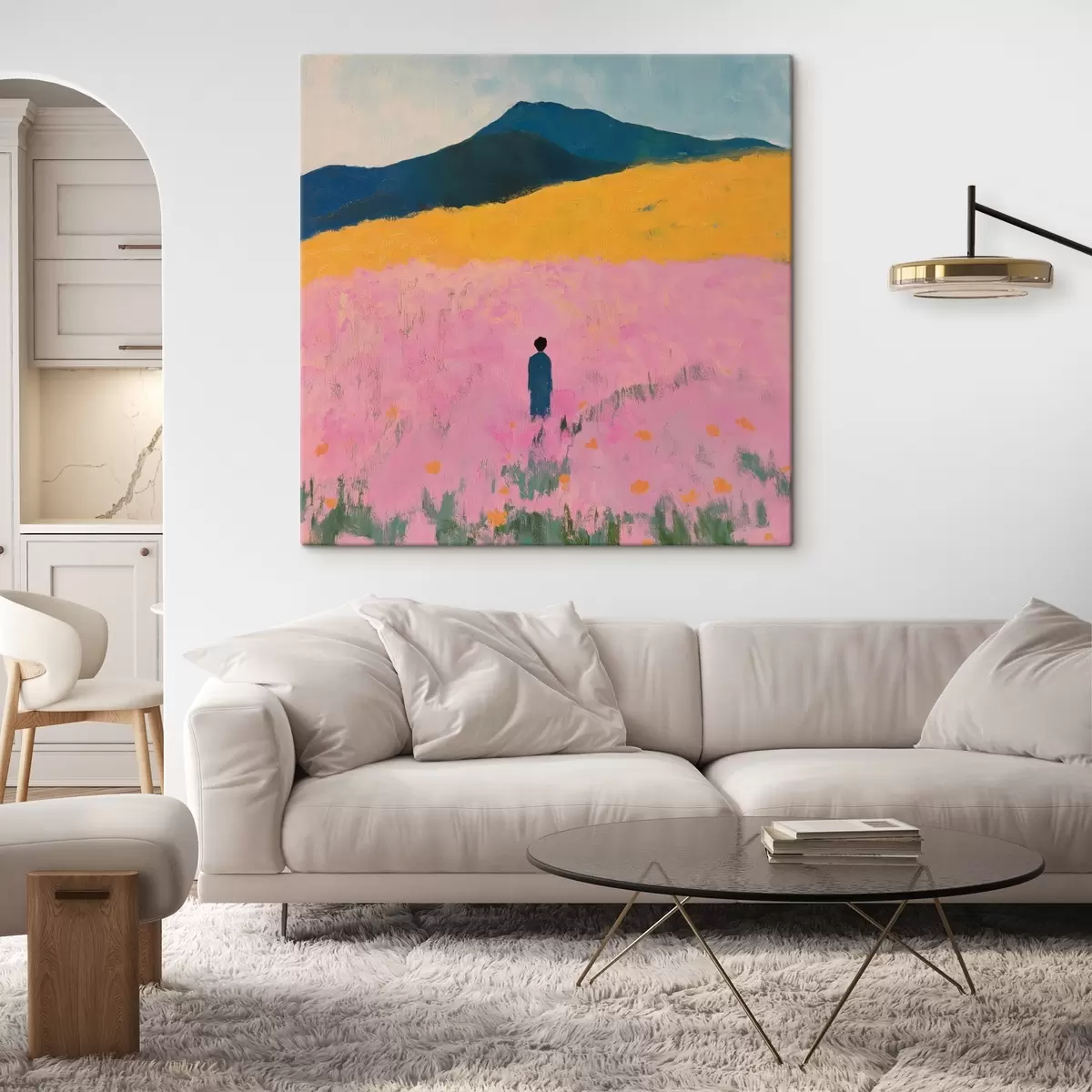 Obraz Muž na poli s ružovými kvetmi Nr. s41164