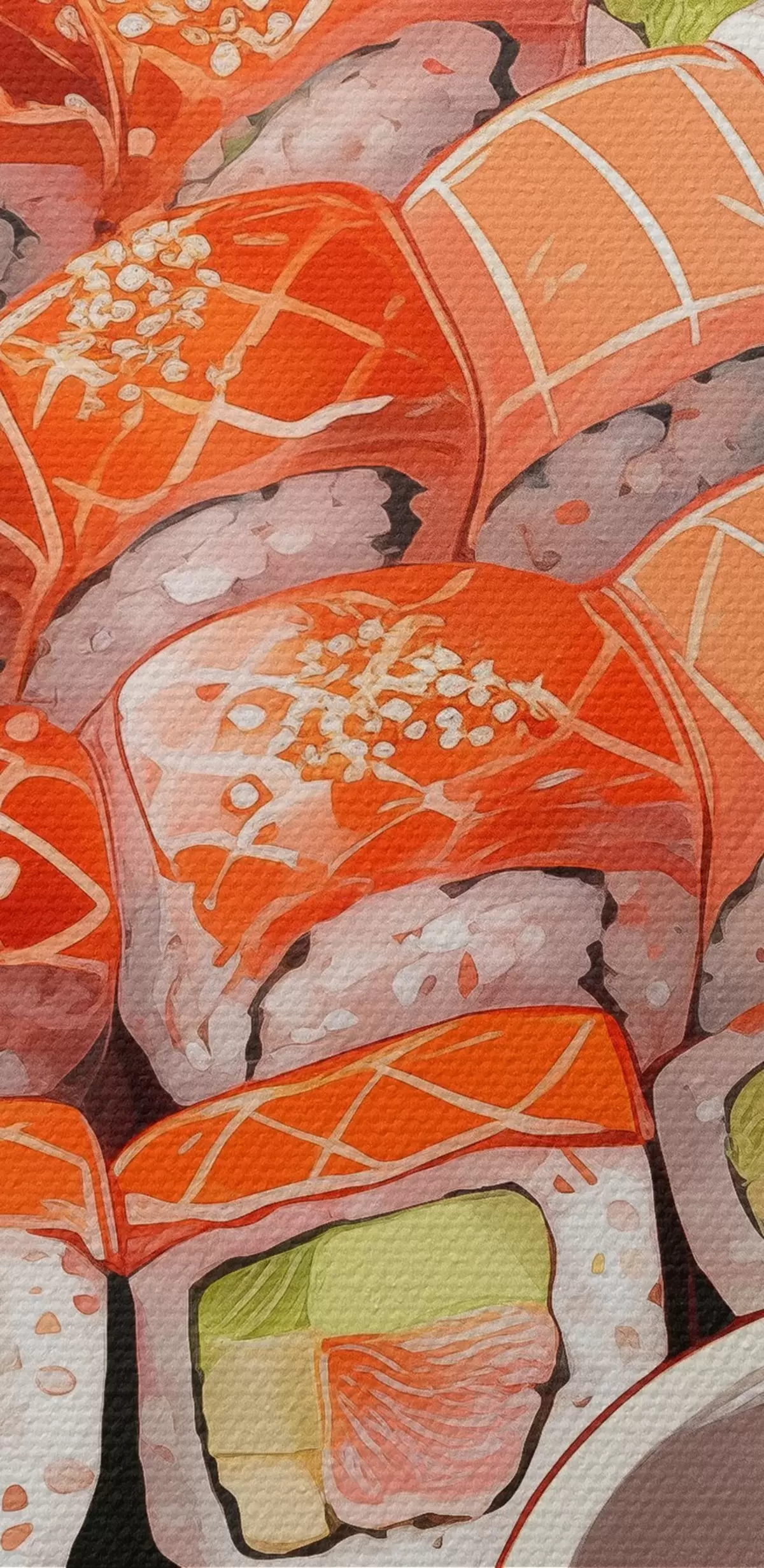 Obraz Akvarelový tanier so sushi, lososom, chutné Nr. s41180