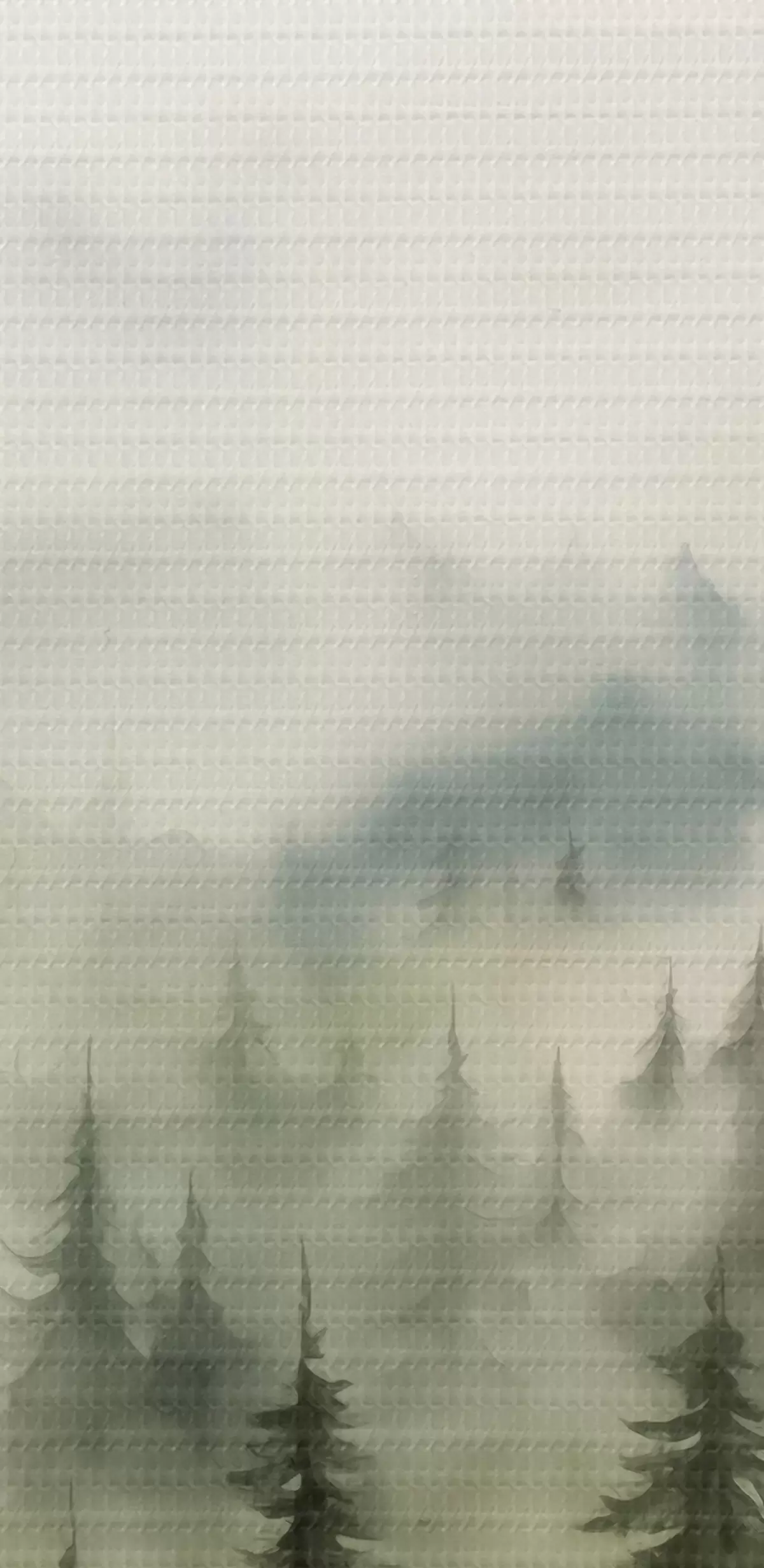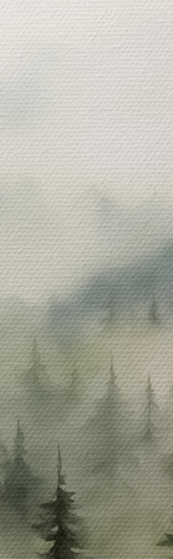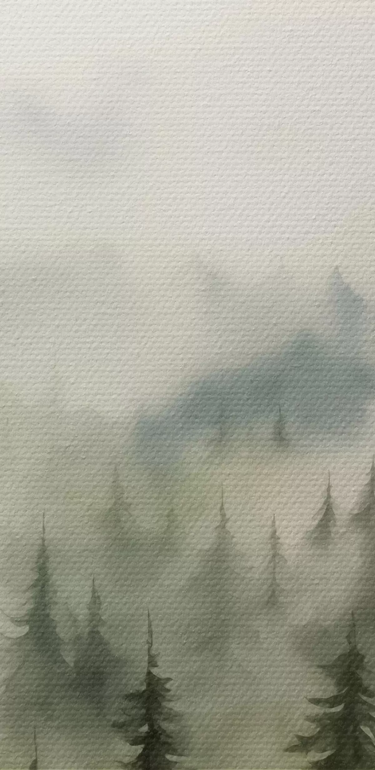 Obraz Zelený les na pozadí hôr hory a hmla akvarel Nr. s41241
