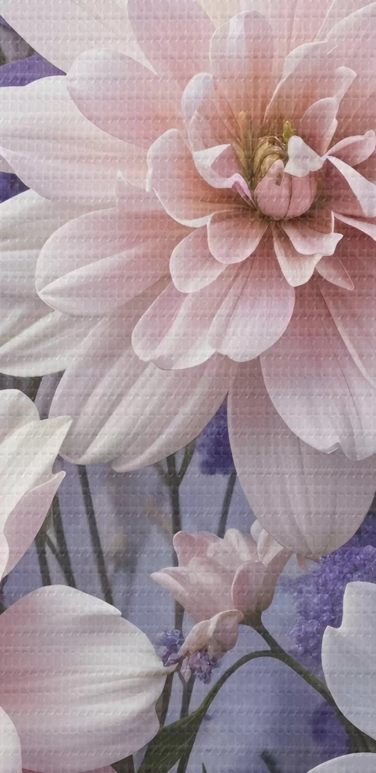 Obraz Kytica veľkých živých kvetov georgín v odtieňoch ružovej, levanduľovej a bielej na jemnom rozmazanom pozadí Nr. s41247