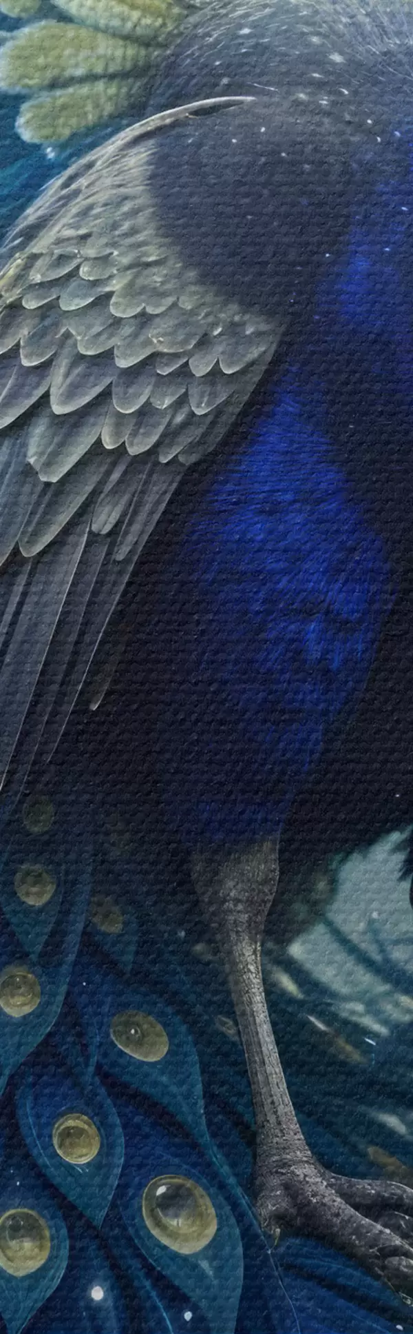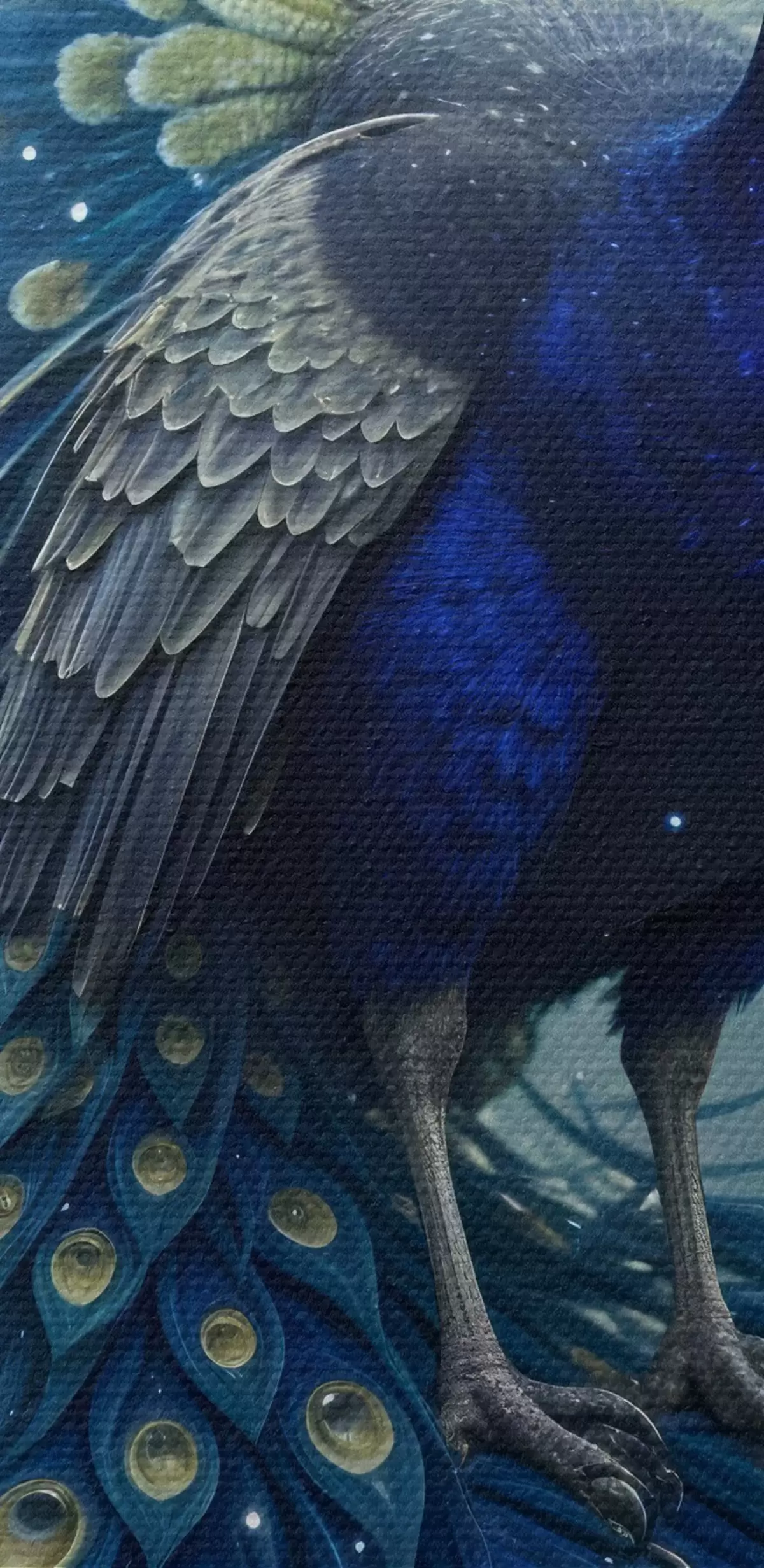 Obraz Žiarivý a majestátny páv na pozadí hviezdnej nočnej oblohy, ktorý vytvára magickú a éterickú atmosféru Nr. s41256