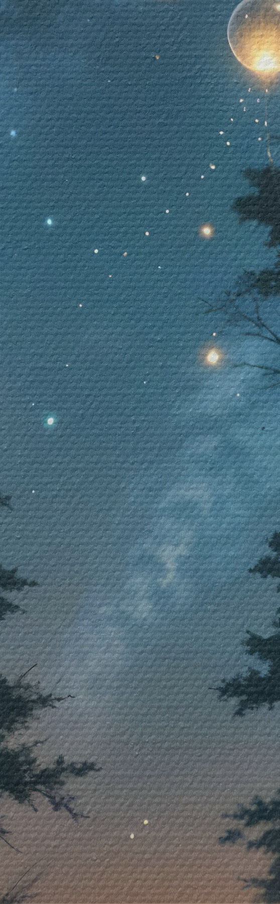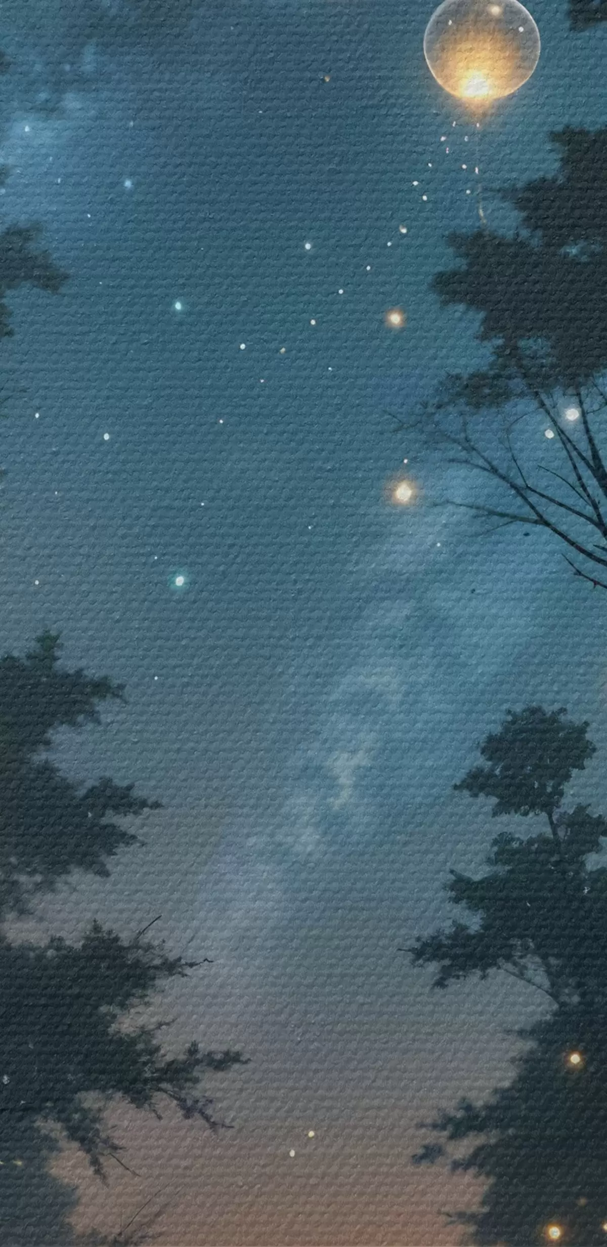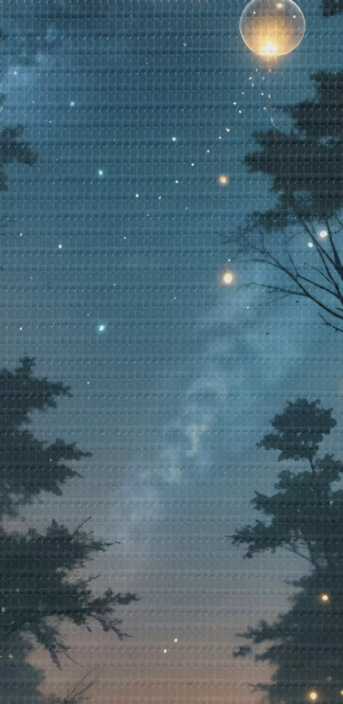 Obraz Magický nočný les so žltými guľami a svetluškami, ktoré sa vznášajú medzi stromami a vytvárajú rozmarnú atmosféru Nr. s41259