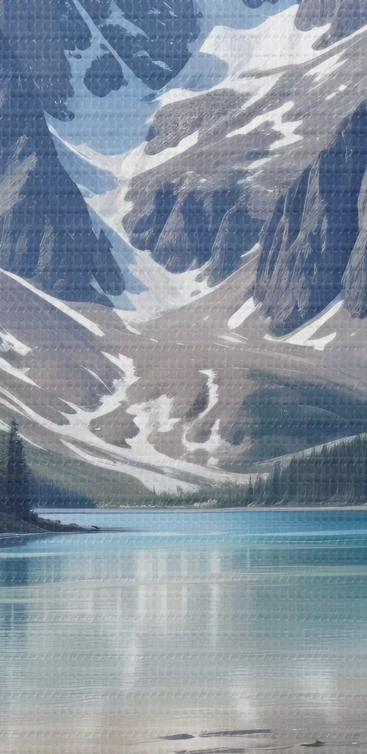 Obraz Pokojné alpské jazero obklopené majestátnymi zasneženými horami, s hustým lesom a zamračenou oblohou Nr. s41264