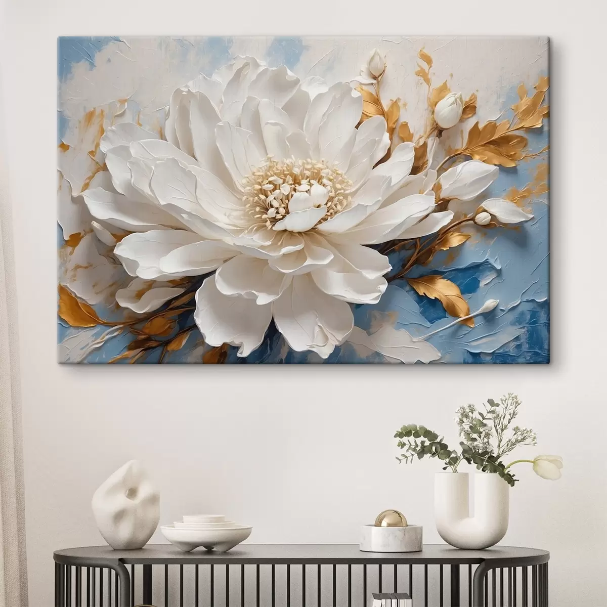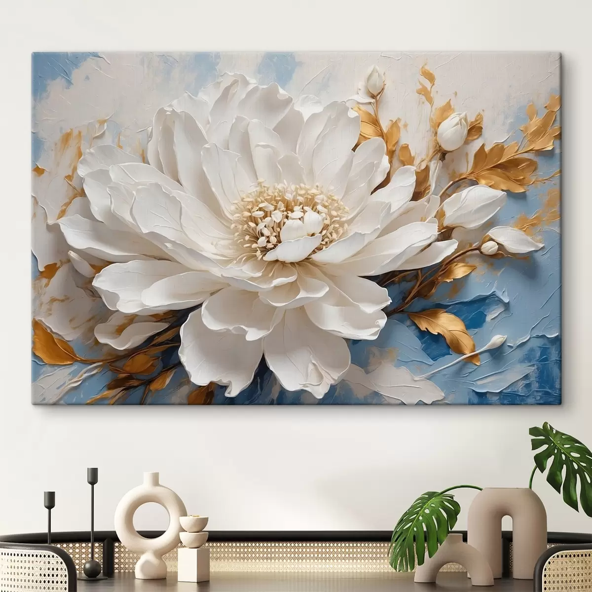 Obraz Biely kvet na modro-bielom pozadí Nr. s41311