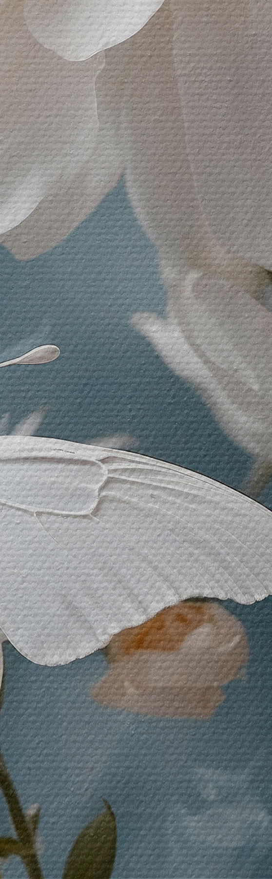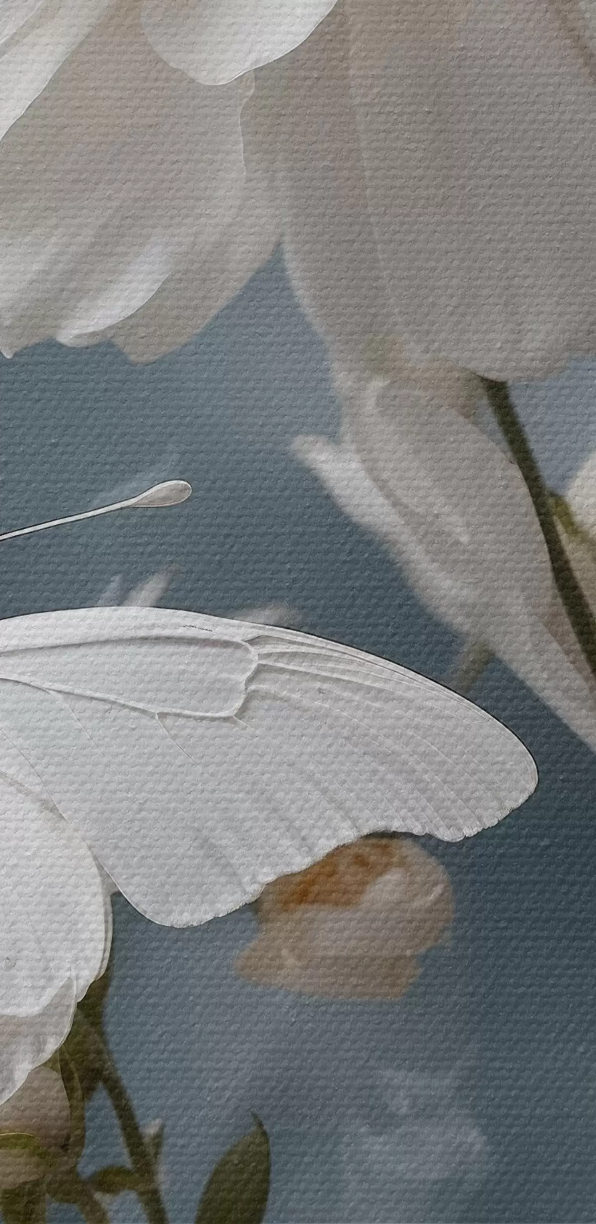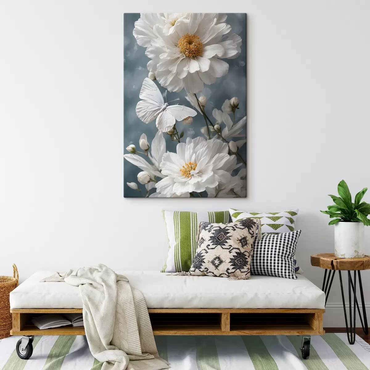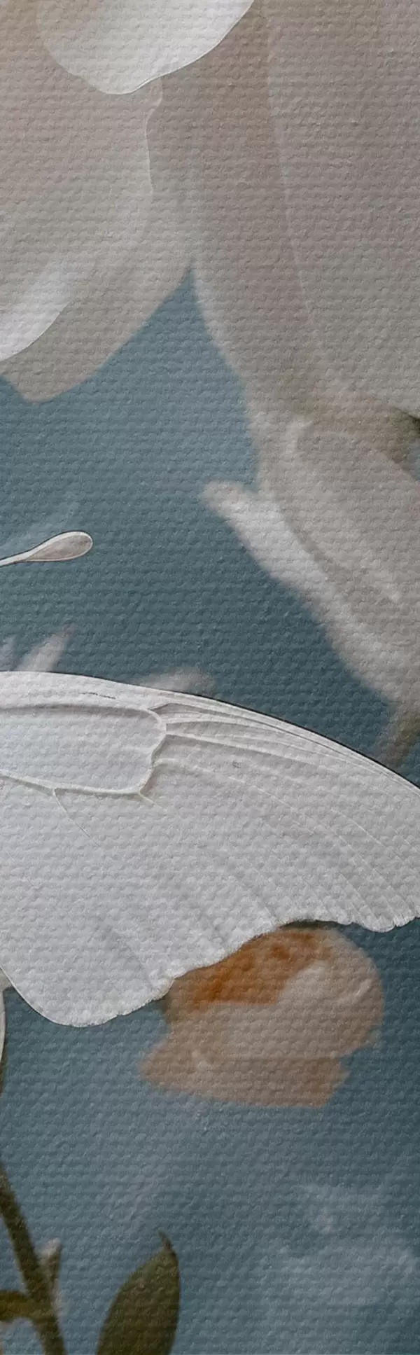 Obraz Biele kvety a motýľ na rozmazanom pozadí Nr. s41312
