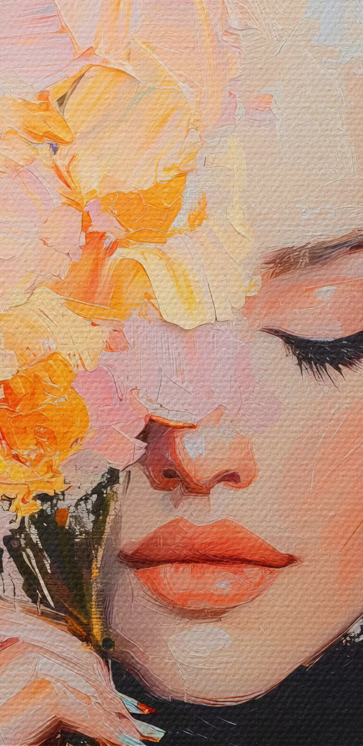 Obraz Abstraktná žena s kyticou kvetov v rukách s ťahmi štetca Nr. s41355