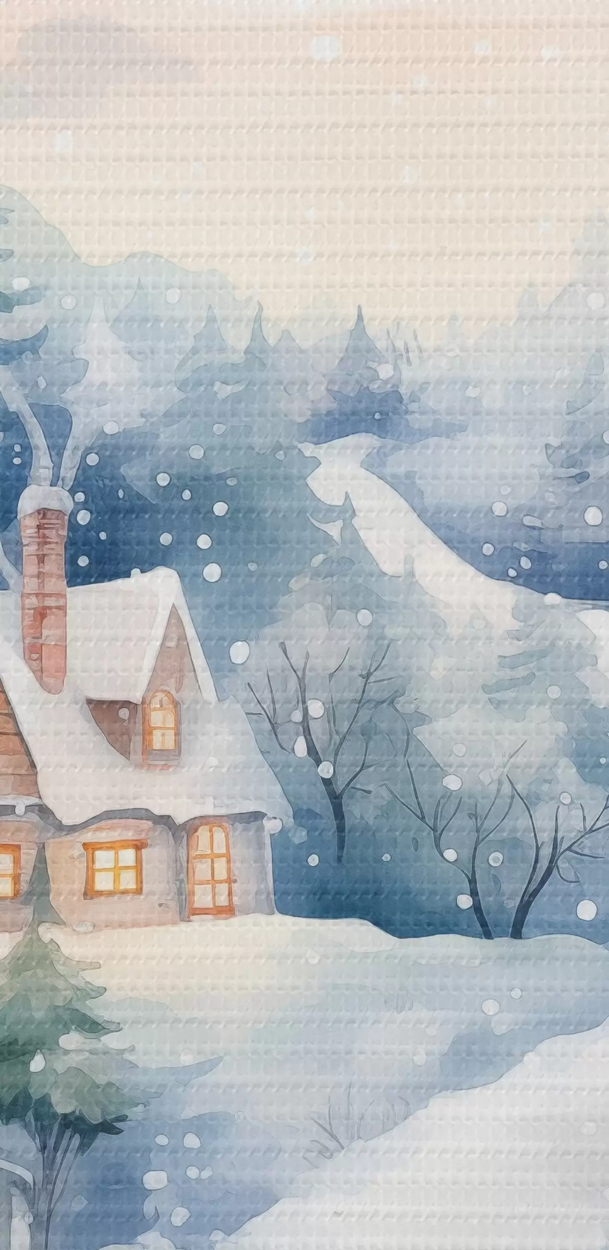 Obraz Akvarel zimná krajina, borovicový les, domy Nr. s41387