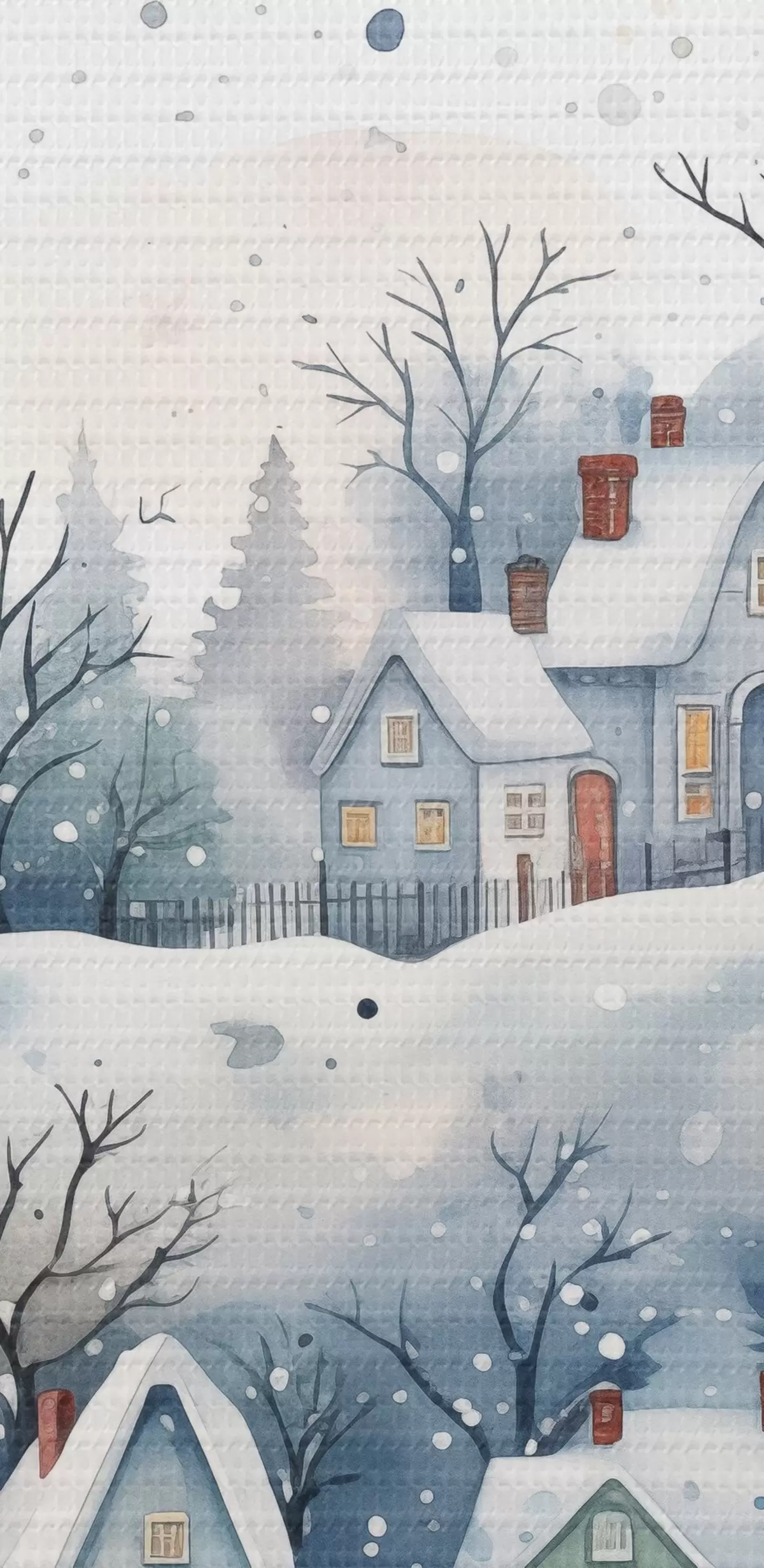 Obraz Akvarelová zimná krajina s domami a borovicovým lesom Nr. s41389