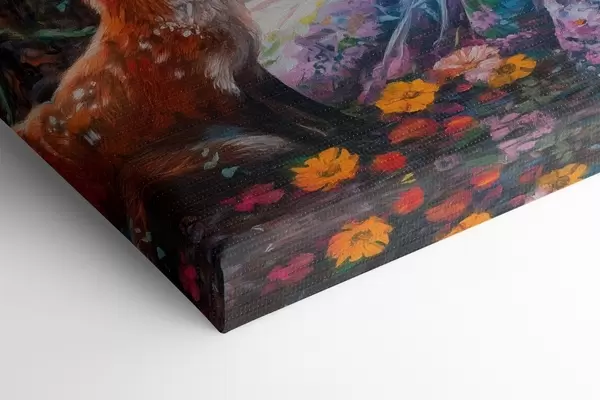 Obraz Krásne dievča s divokými zvieratami, lúka, kvety, líšky, vtáky, olejová kresba Nr. s41453