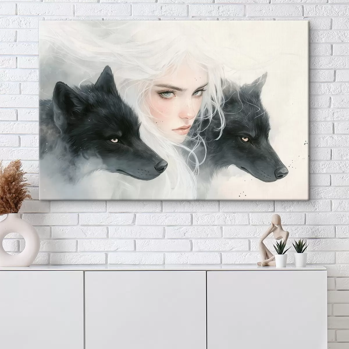 Obraz Portrét ženy, divoké vlky, anime, akryl Nr. s41456