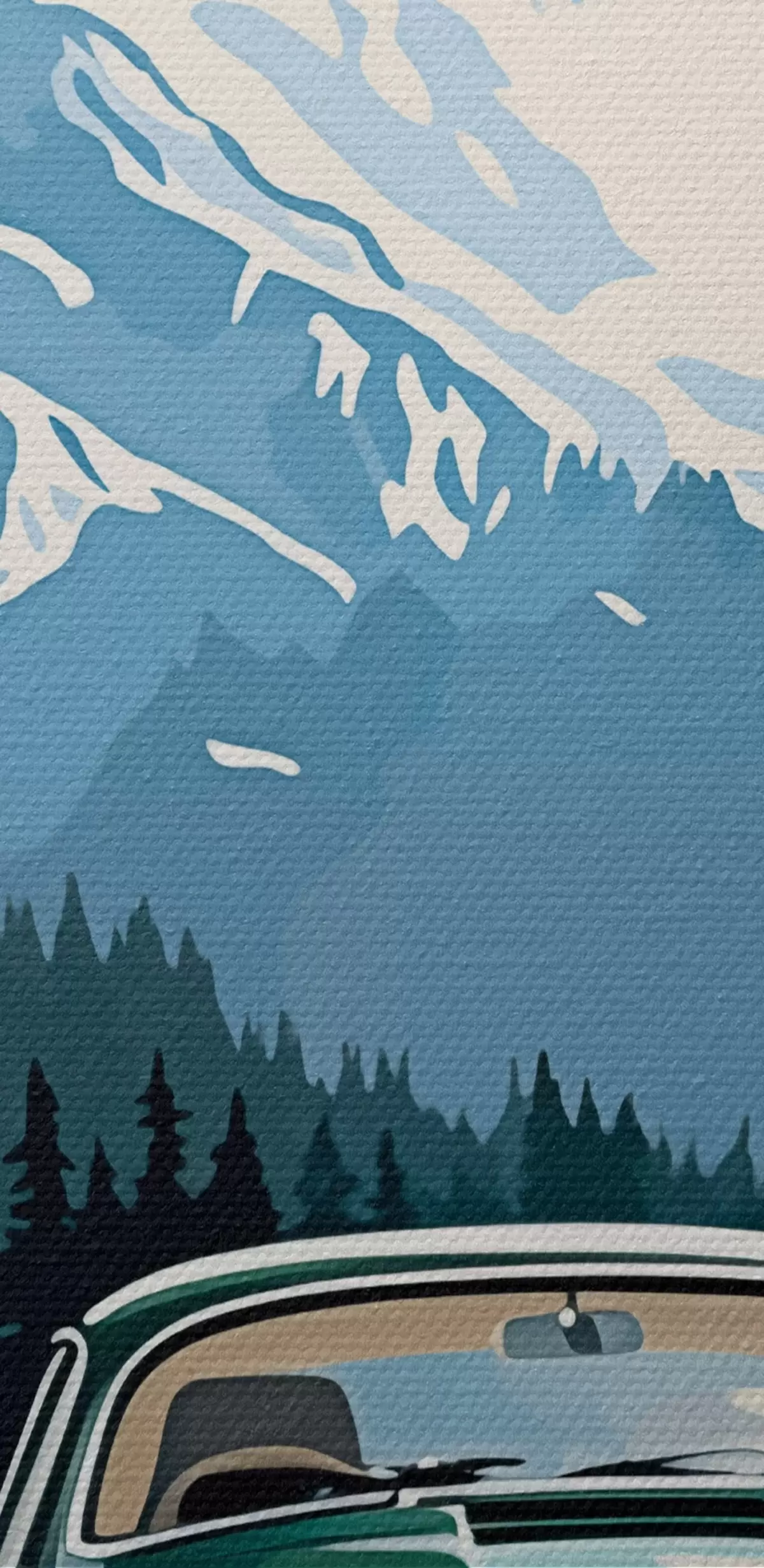 Obraz Retro auto na zimnej horskej ceste Nr. s41478