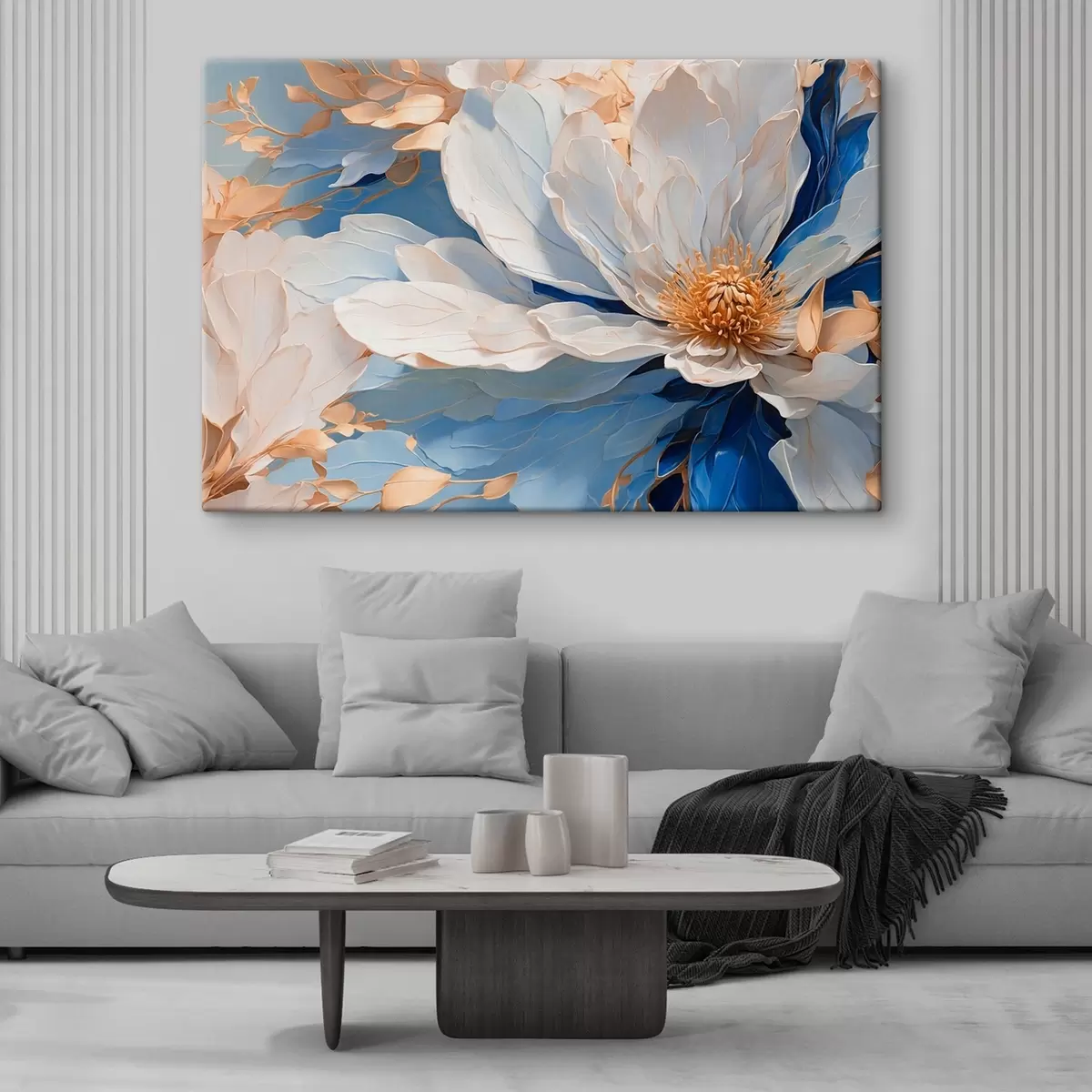 Obraz Detailný záber na kvet s bielymi a modrými okvetnými lístkami Nr. s41512