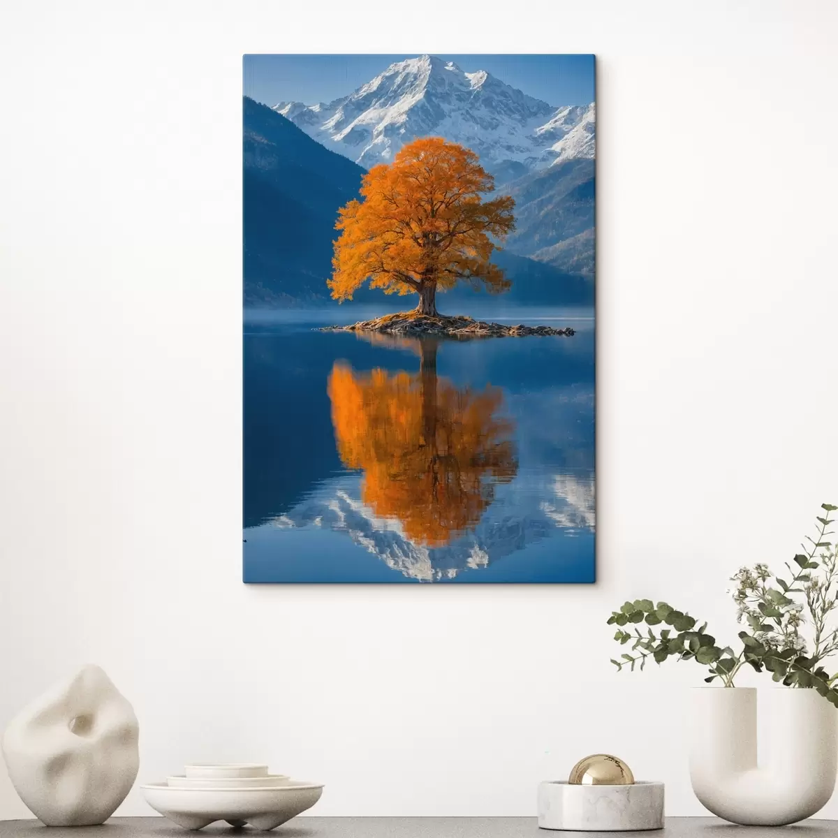 Obraz Strom uprostred jazera na horskom pozadí Nr. s41585