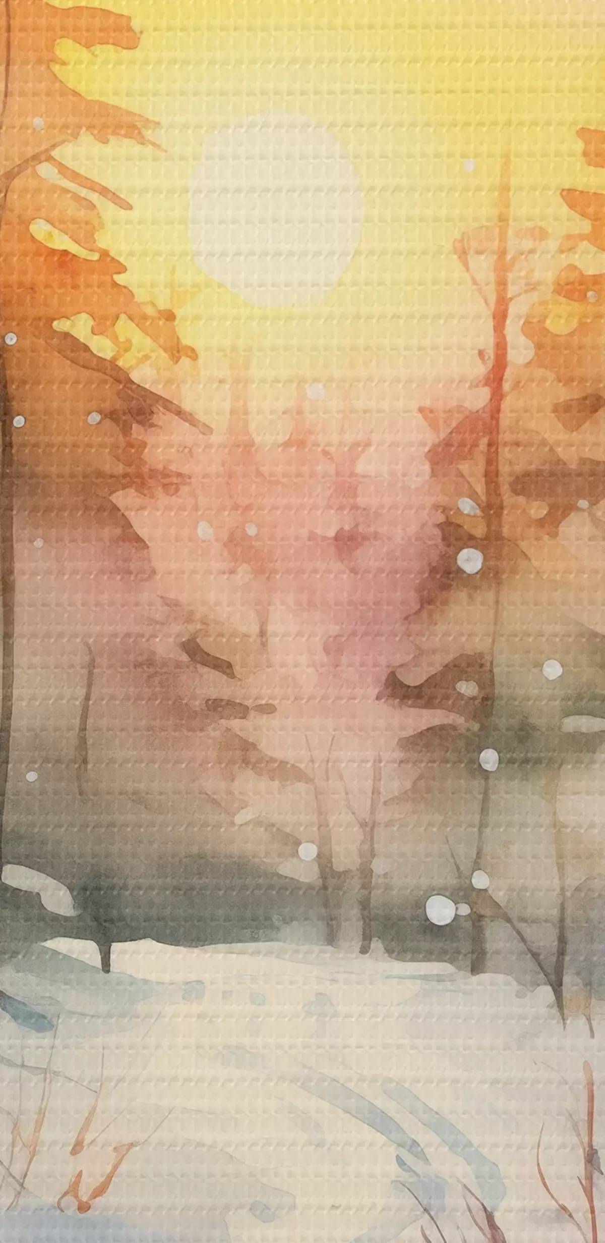 Obraz Akvarel zimný les, snehové vločky, krásna obloha, západ slnka Nr. s41640