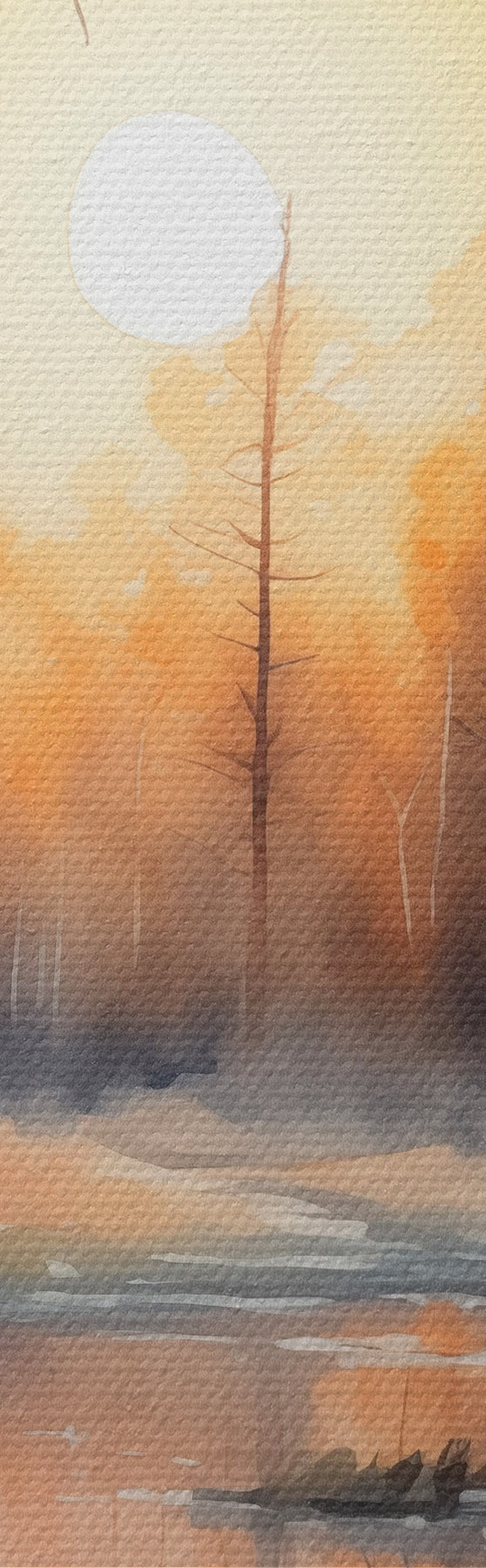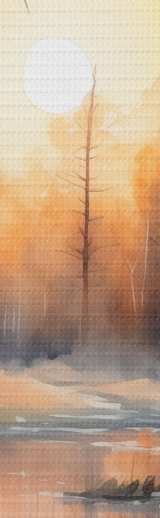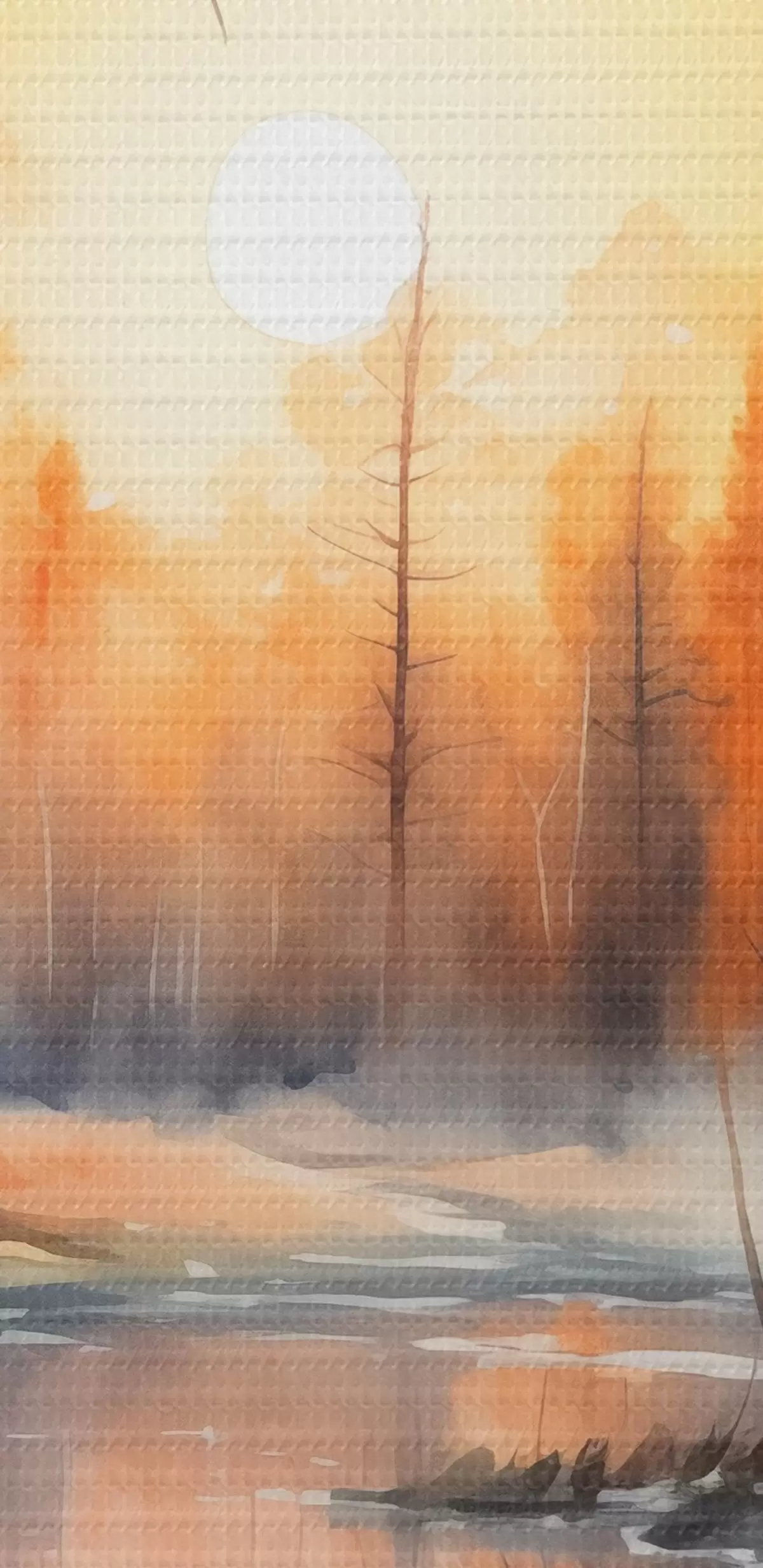Obraz Jazero v lese, akvarel, jesenné farby, hmla, obloha pri západe slnka Nr. s41642