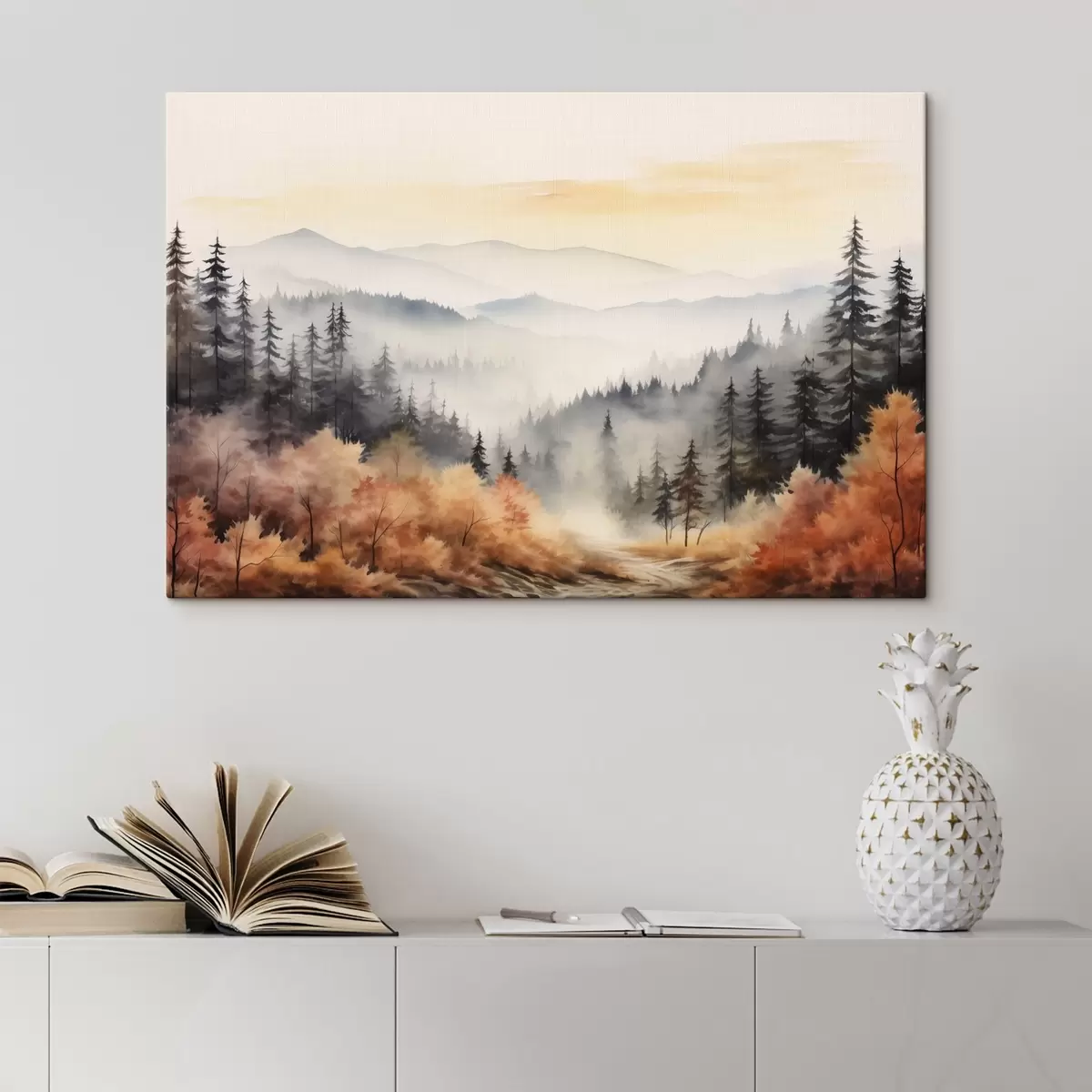 Obraz Krásne hmlisté hory, jesenný les, akvarel Nr. s41646