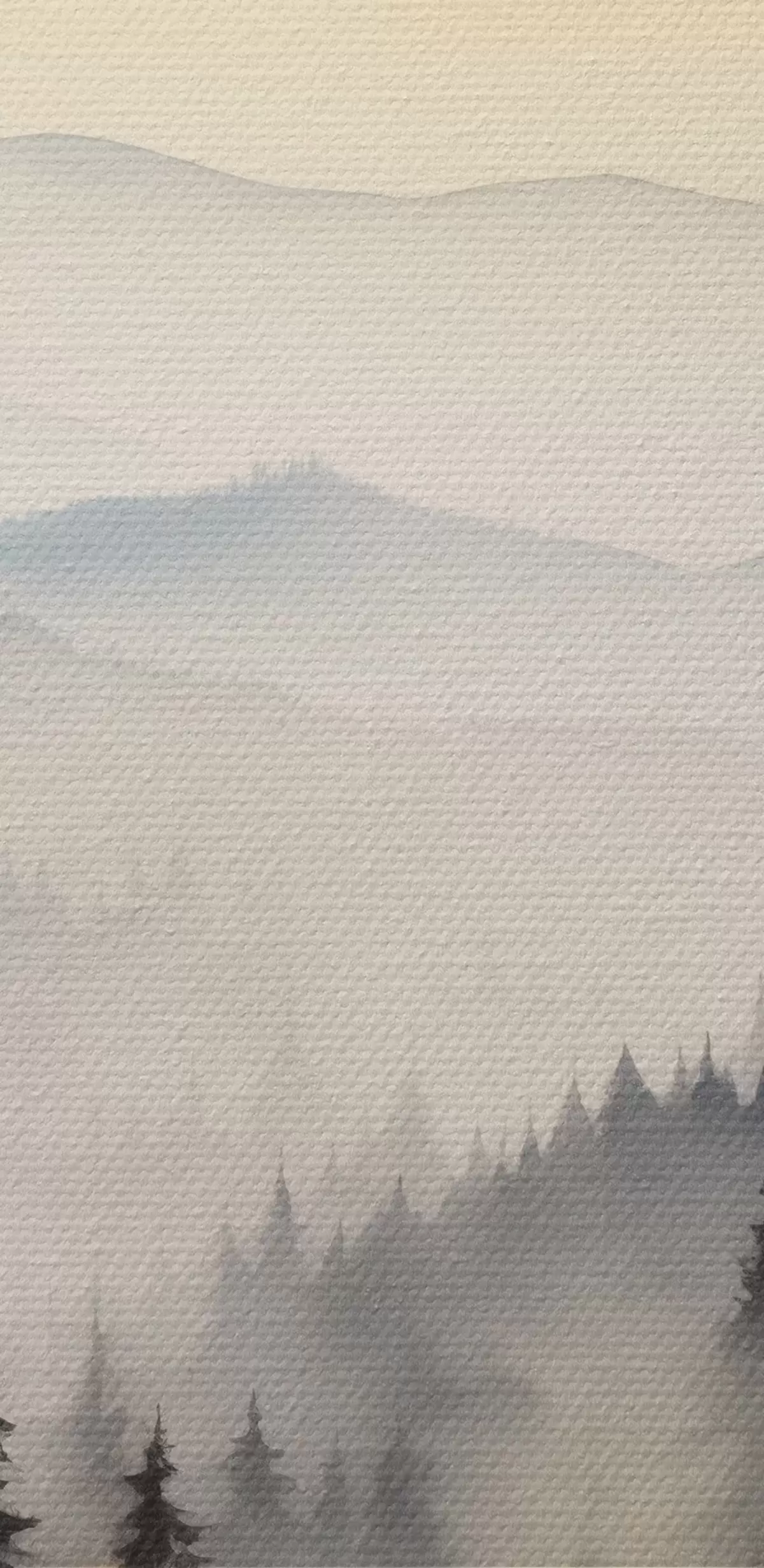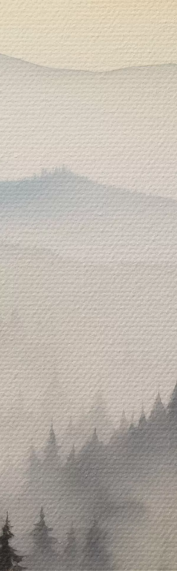 Obraz Krásne hmlisté hory, jesenný les, akvarel s41646