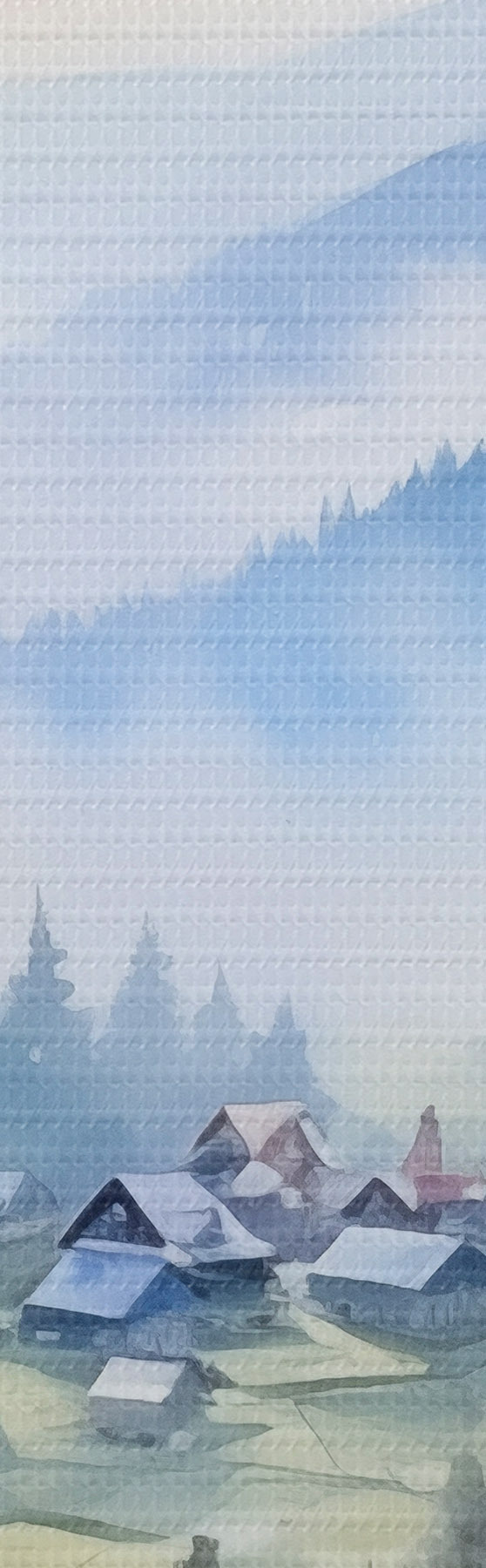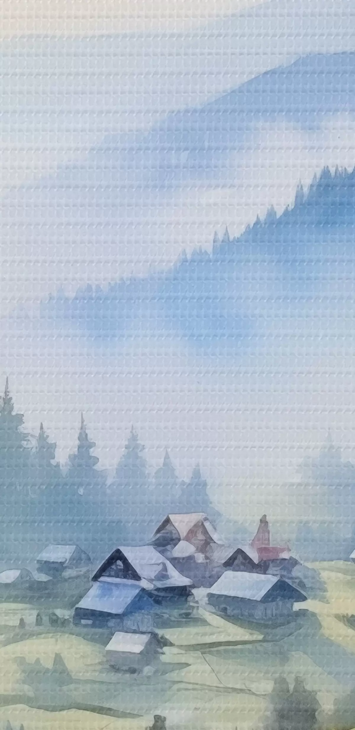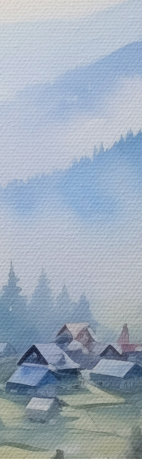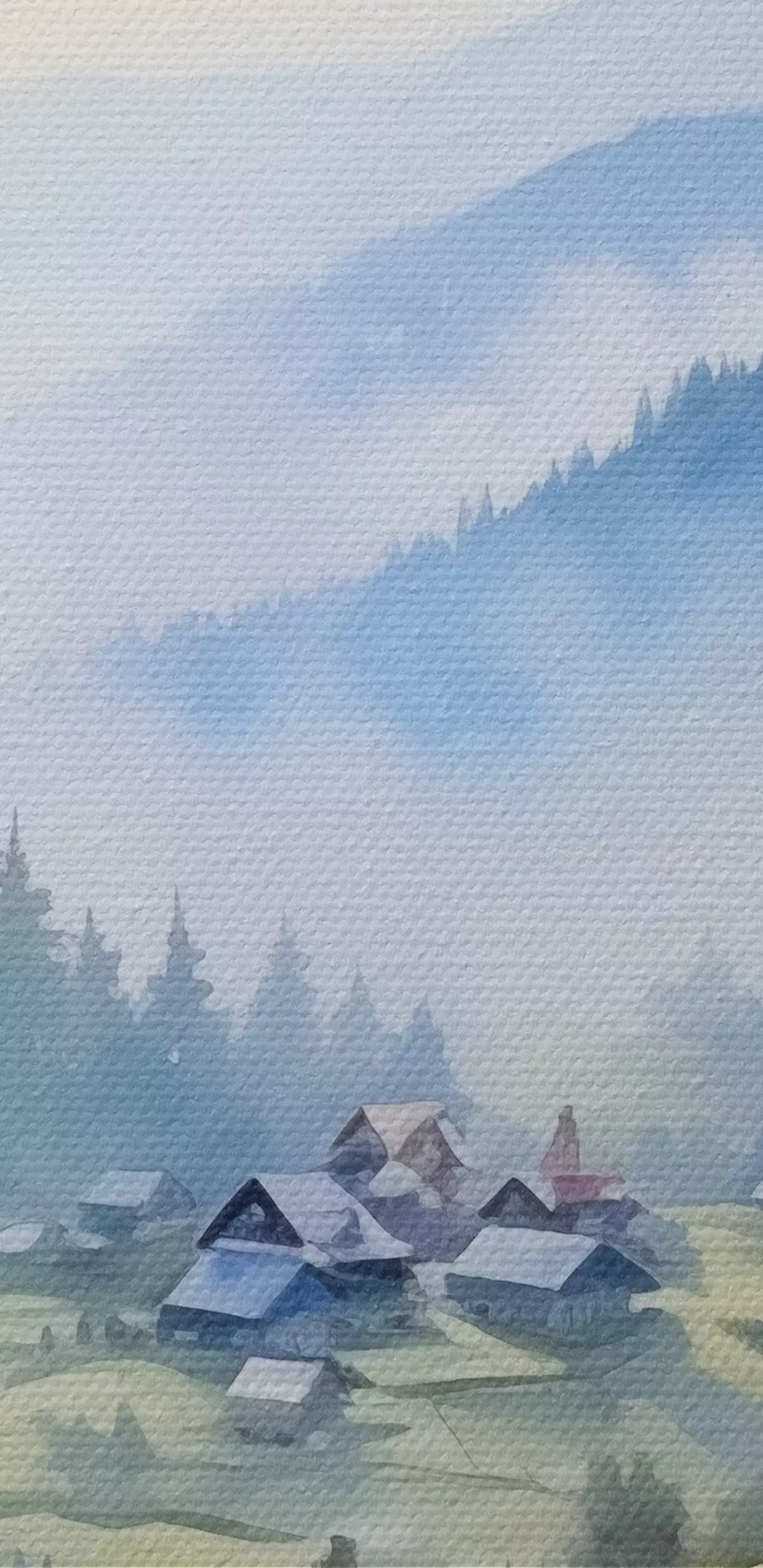 Obraz Karpatská dedina v hmlistých horách, les, akvarel Nr. s41648