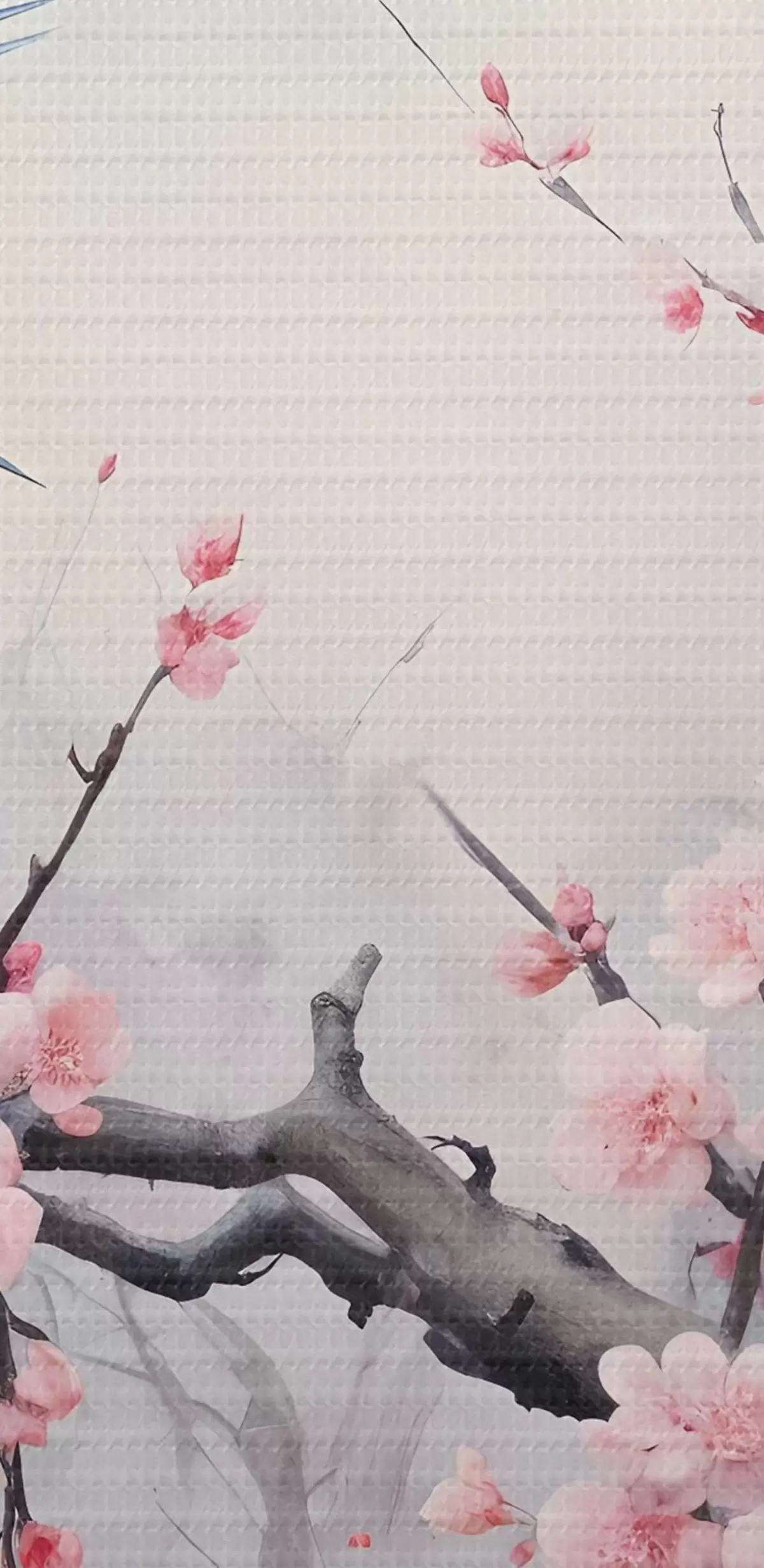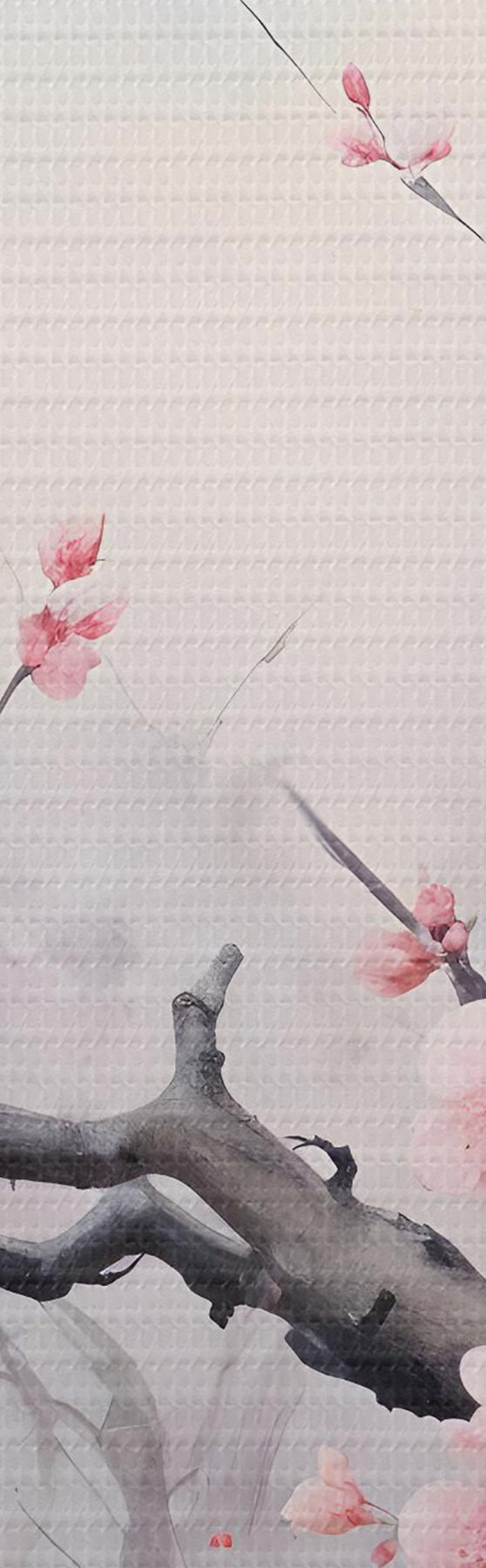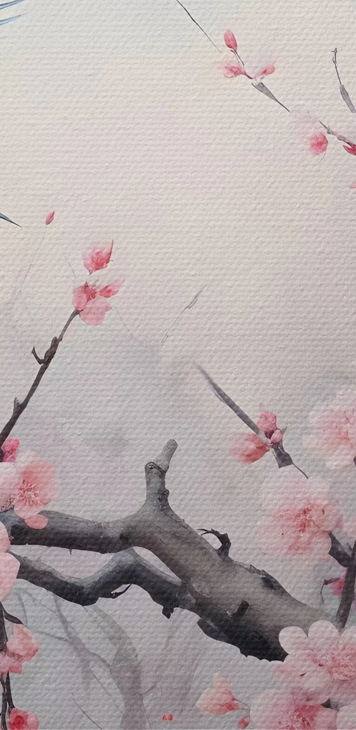 Obraz Modrý vták letiaci medzi ružovými kvetmi čerešní na hmlistom jarnom tlmenom pozadí Nr. s41712