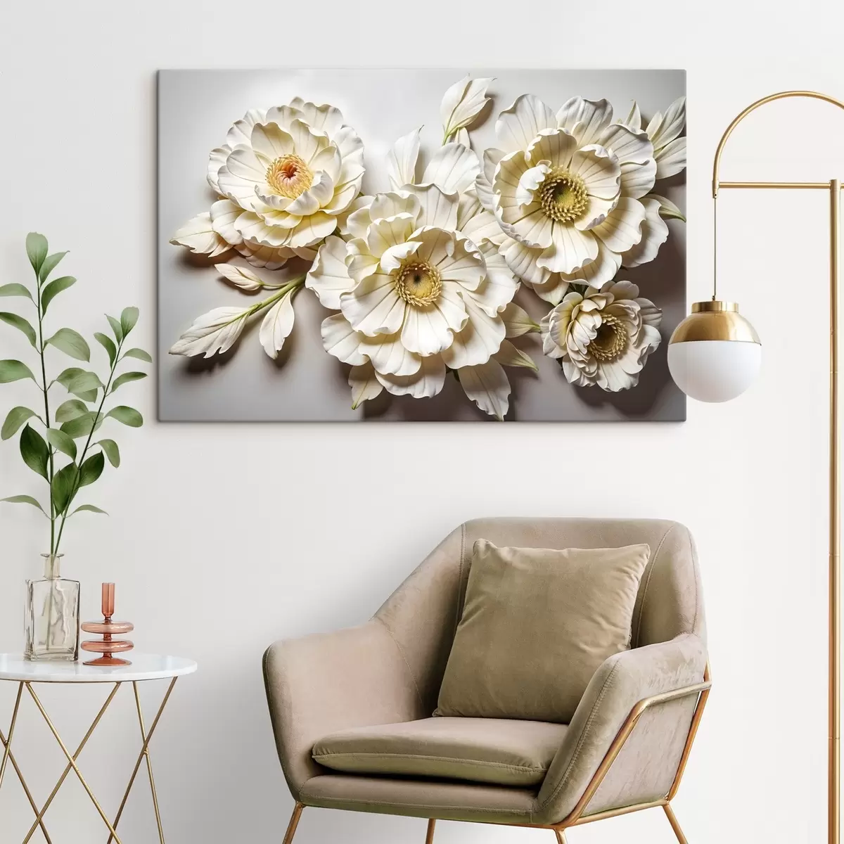 Obraz Elegantné biele a žlté kvety so zložitými detailmi na hladkom pozadí Nr. s41731