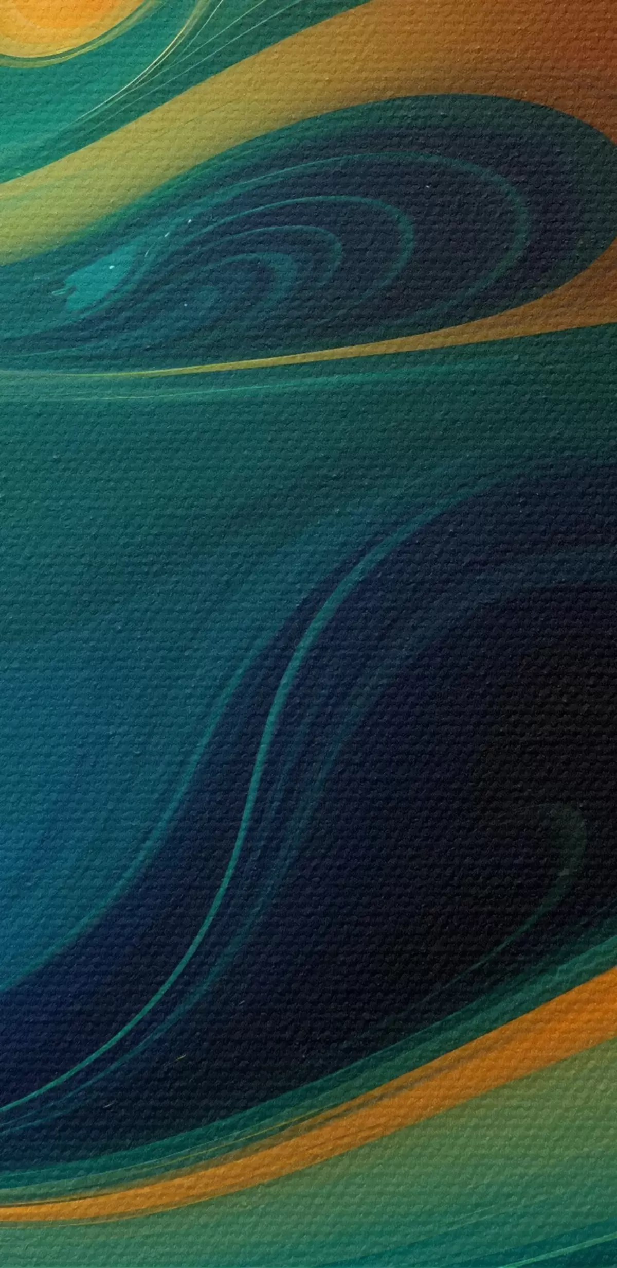 Obraz Víriace abstraktné vzory v odtieňoch zelenej, modrej a oranžovej s plynulými organickými tvarmi a textúrami Nr. s41737