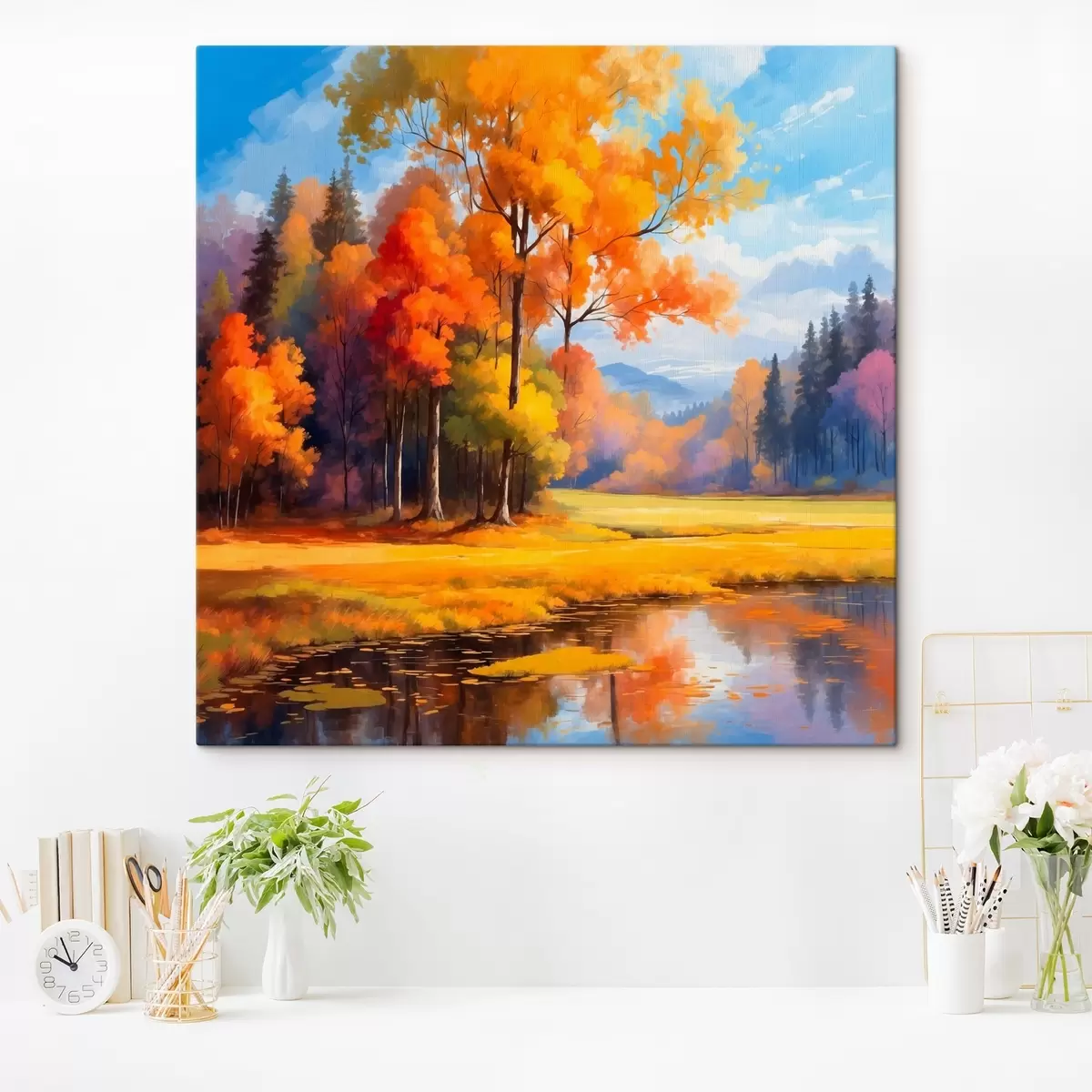 Obraz Jazero a jesenný les v akrylovom štýle Nr. s41766