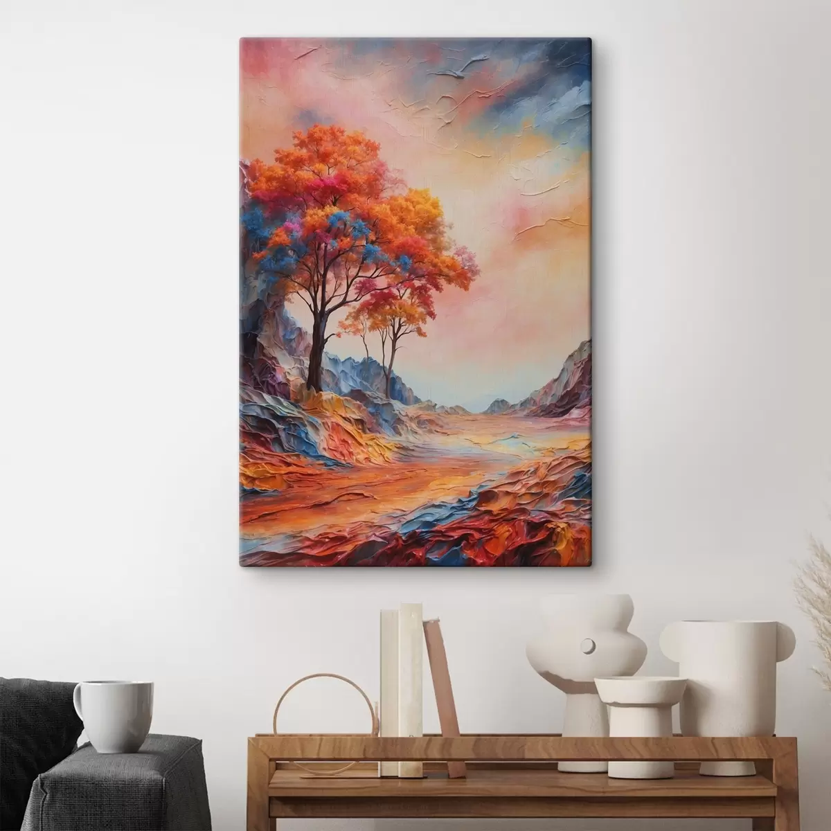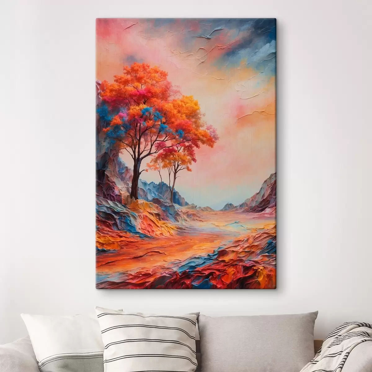 Obraz Stromy a abstraktné pestrofarebné hory Nr. s41772