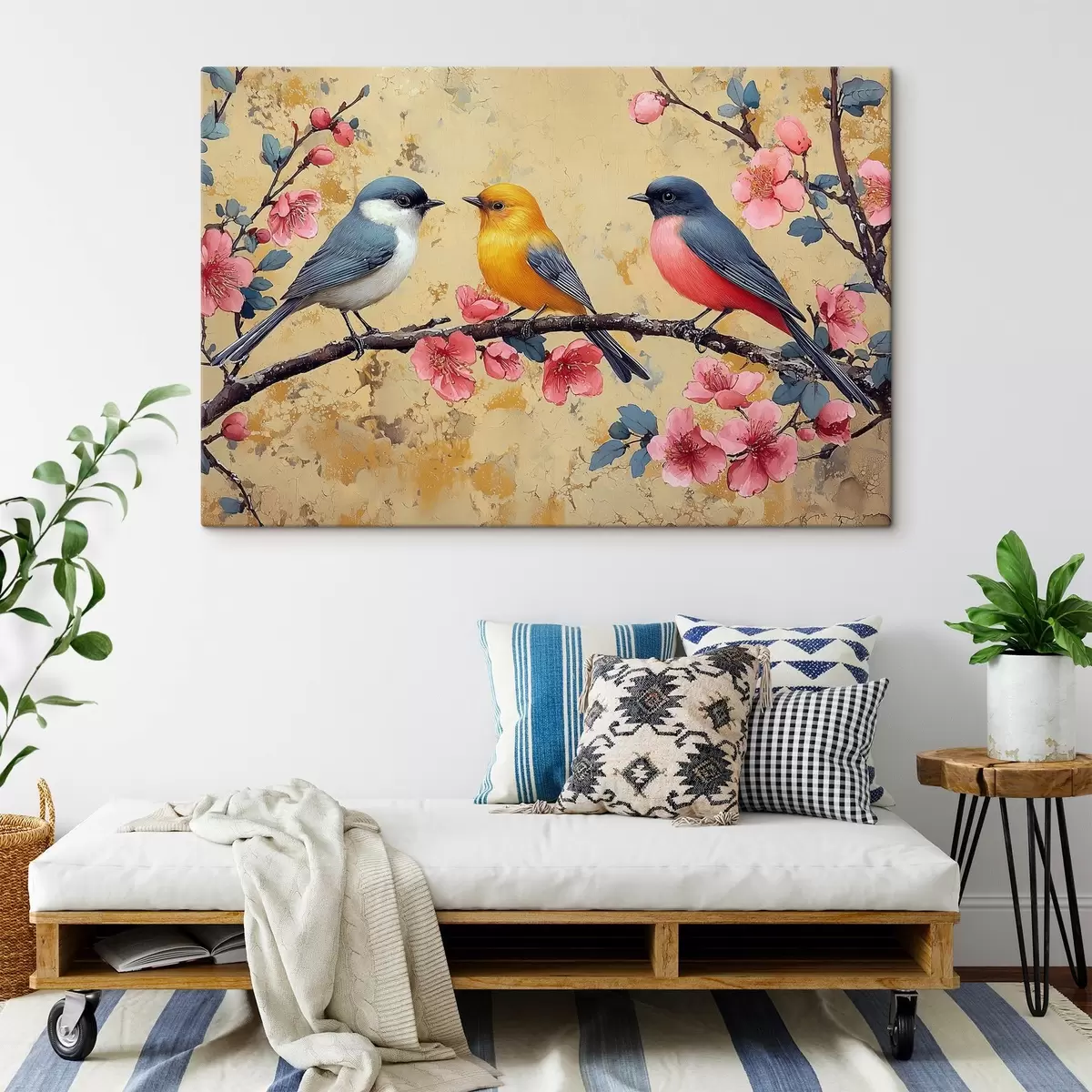 Obraz Vrabce na vetve sakury v štýle olejomaľby Nr. s41835