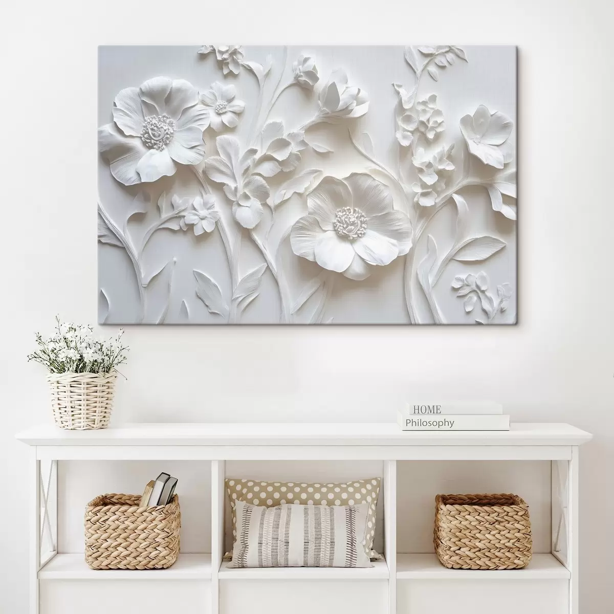 Obraz Biele štukové kvety Nr. s41867
