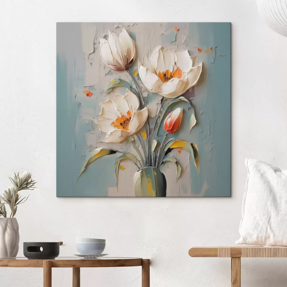 Obraz Biele tulipány vo váze imitujúce maľbu Nr. s41933