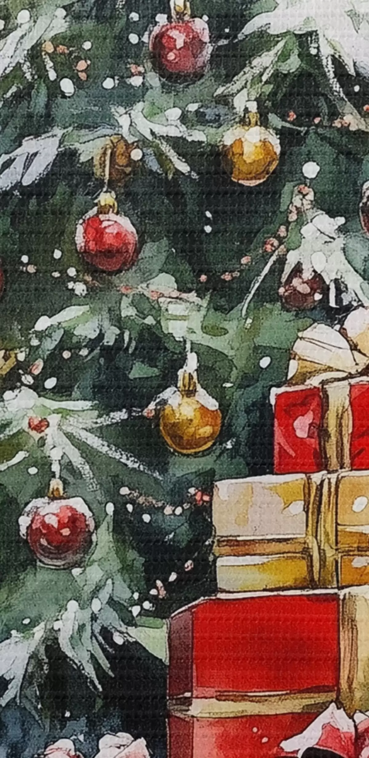 Obraz Slávnostný vianočný stromček so zabalenými darčekmi, sneh, akvarel Nr. s41953