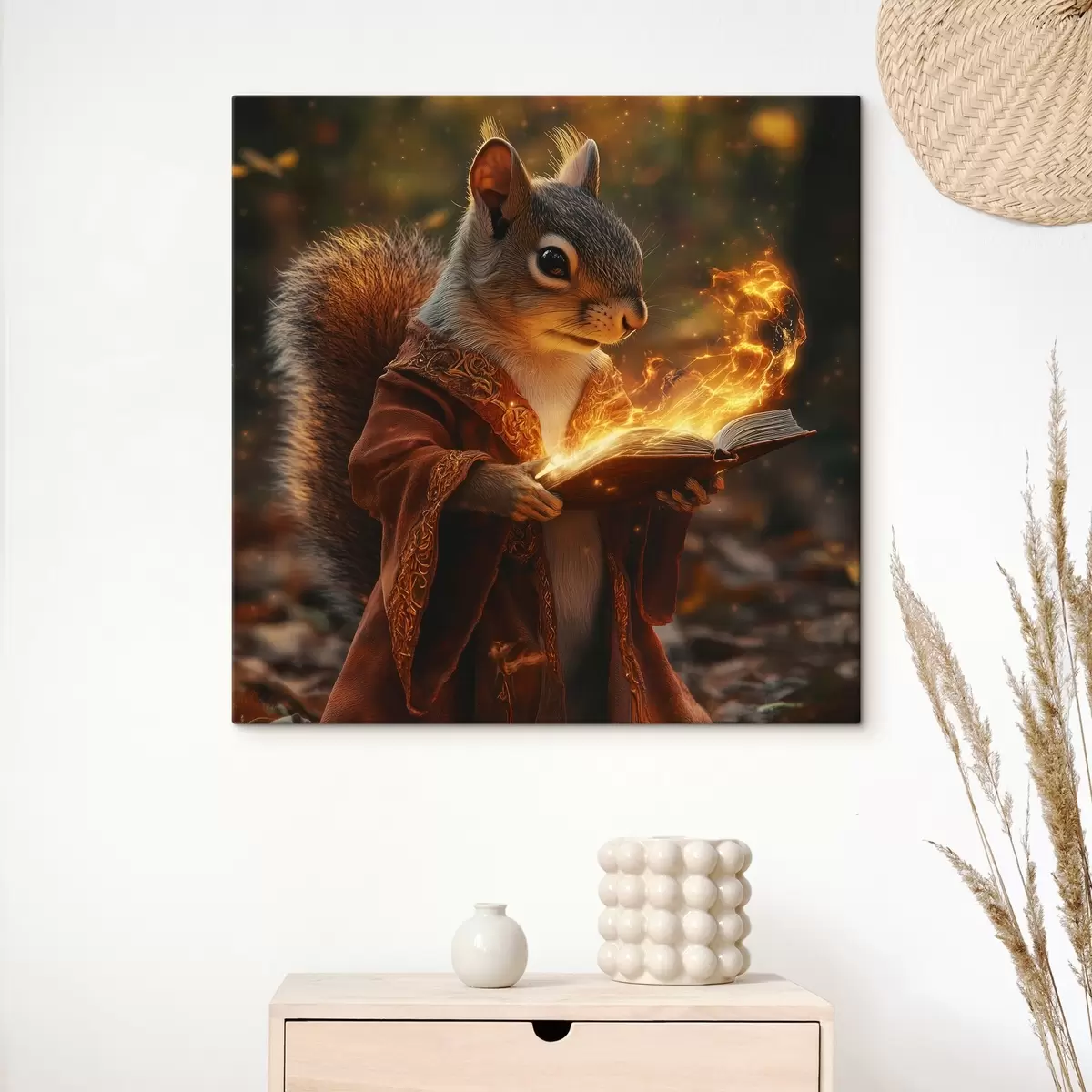 Obraz Mystická veverička v čarodejníckom rúchu s magickým zväzkom v rukách Nr. s41983