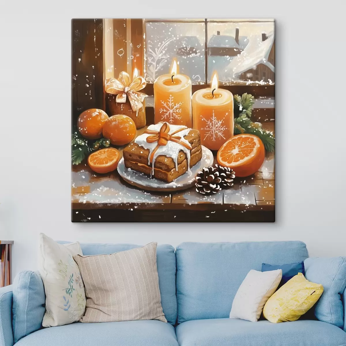 Obraz Vianočný koláč, mandarínky, sviečky Nr. s42101