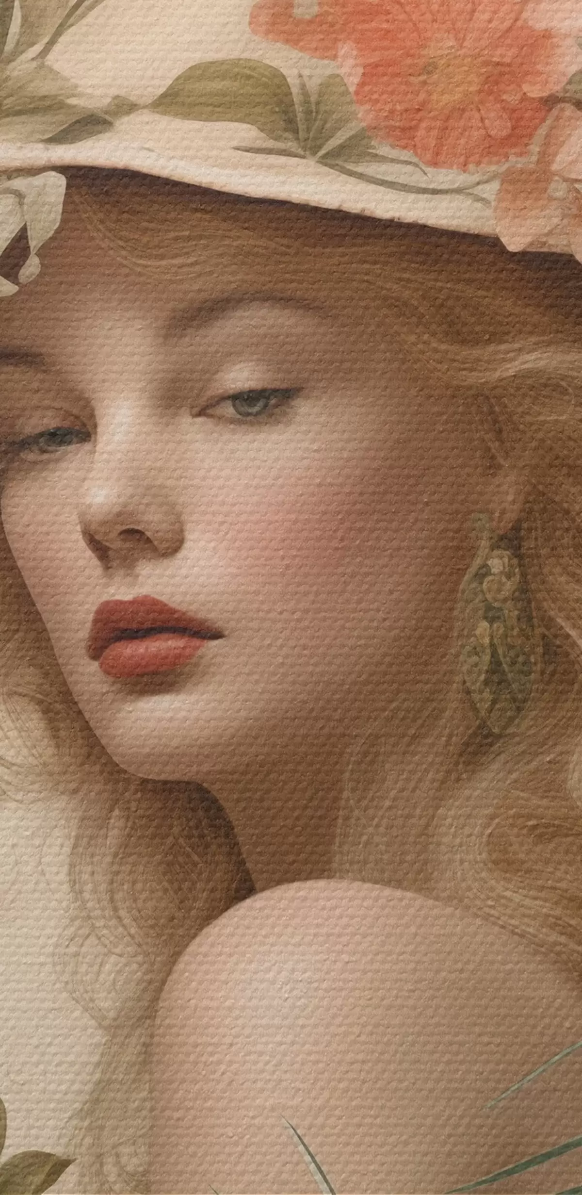 Obraz Dievča v klobúku v tropickom štýle vintage Nr. s42115