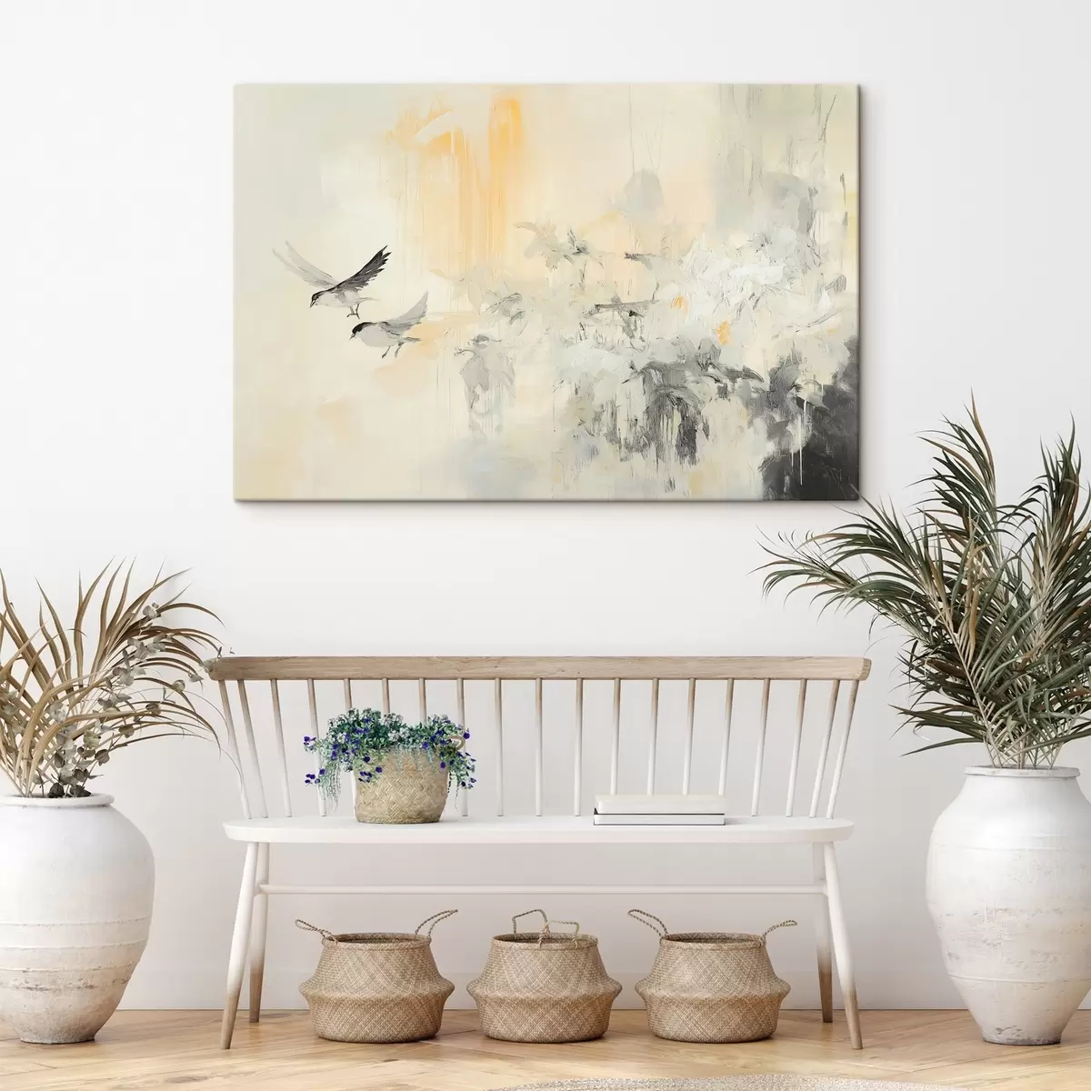 Obraz Abstrakcia s vtákmi, akryl, sivé a béžové farby Nr. s42206