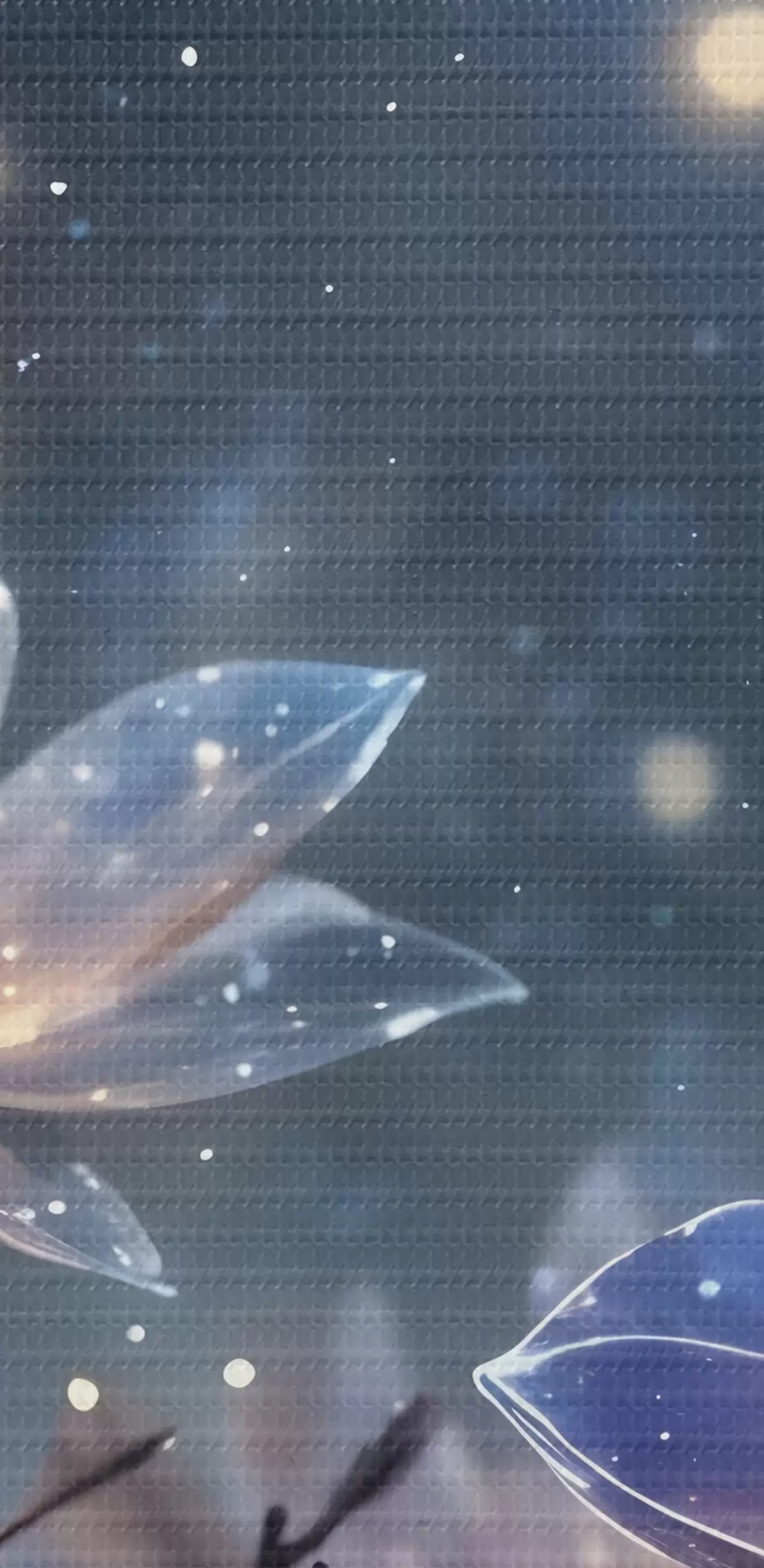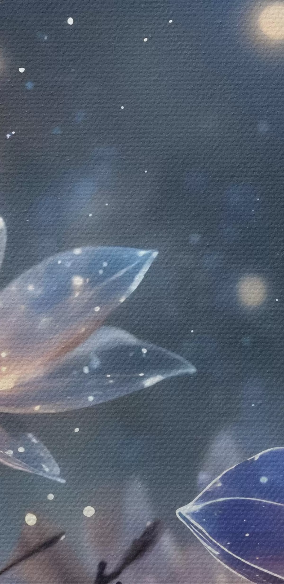 Obraz Abstraktné fantasy kvety na konároch s textúrovanými okvetnými lístkami s hviezdami a mesiacom na pozadí nočnej oblohy Nr. s42211