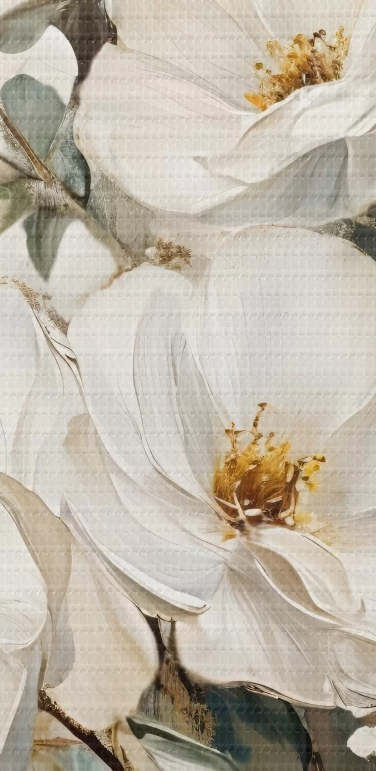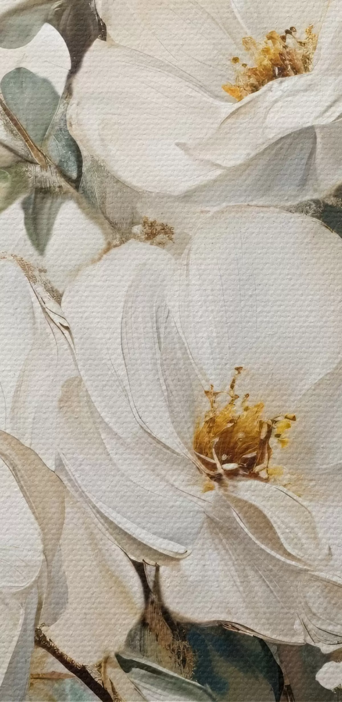 Obraz Kytica veľkých bielych kvetov v štýle olejomaľby so žltými stredmi na svetlom pozadí Nr. s42222