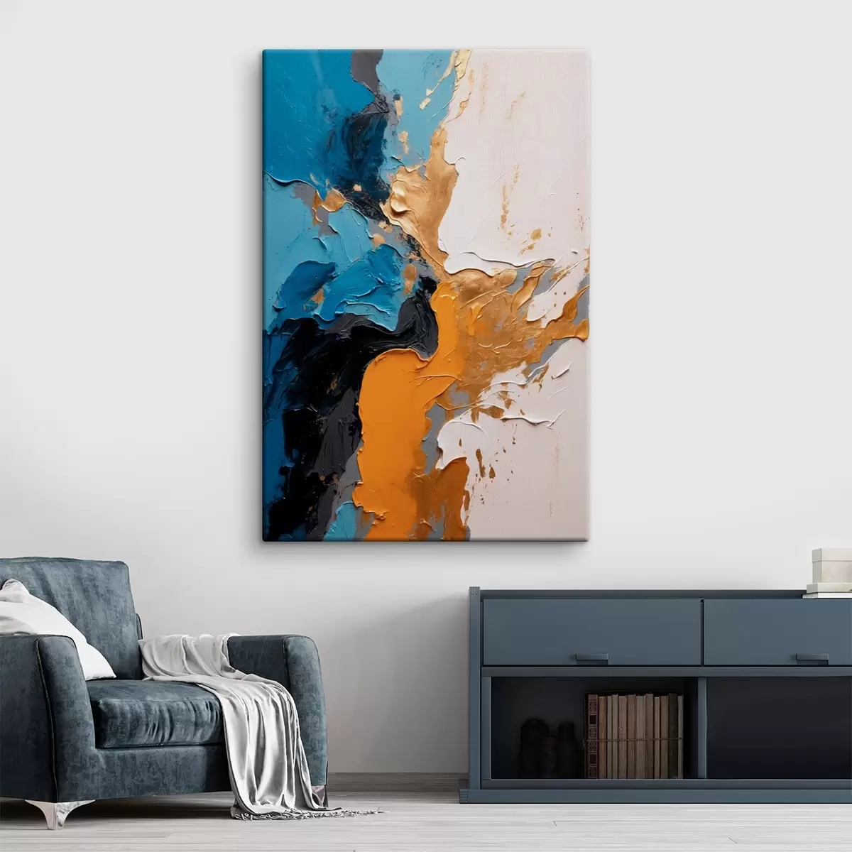 Obraz Abstraktná maľba s modrou bielou a žltou farbou Nr. s42254