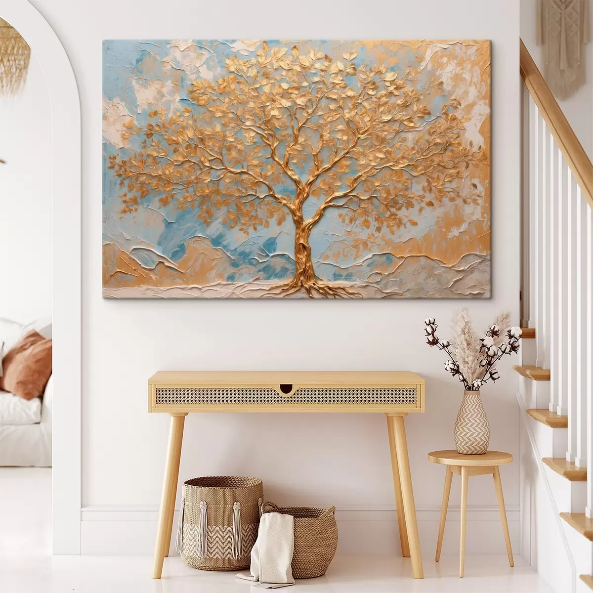 Obraz Žltý strom na modrobielom pozadí Nr. s42266