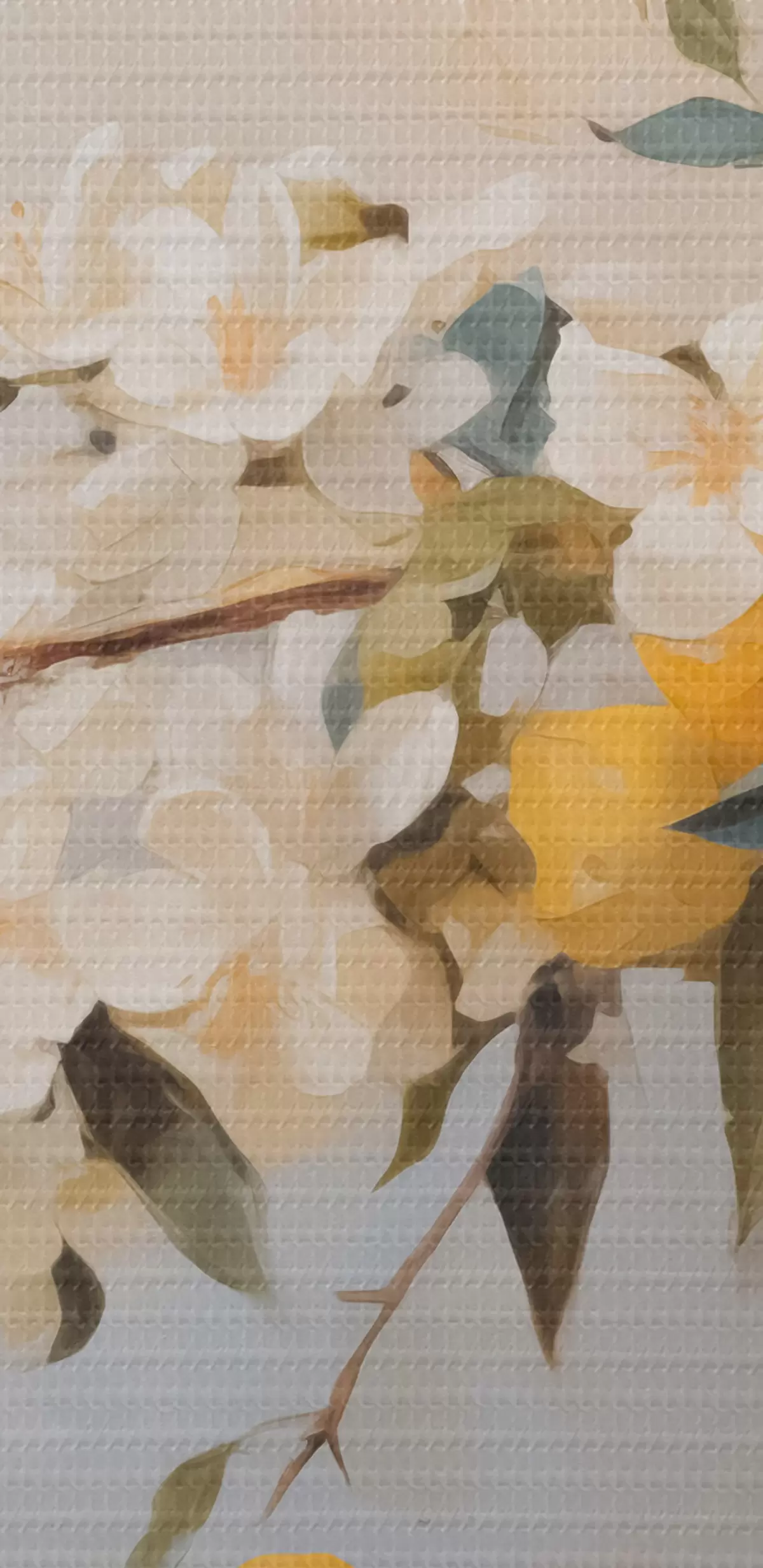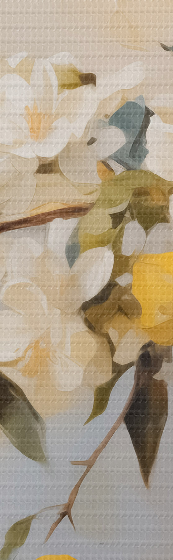 Obraz Váza s vetvičkami bielych kvetov a maľbou imitujúcou citrón Nr. s42360