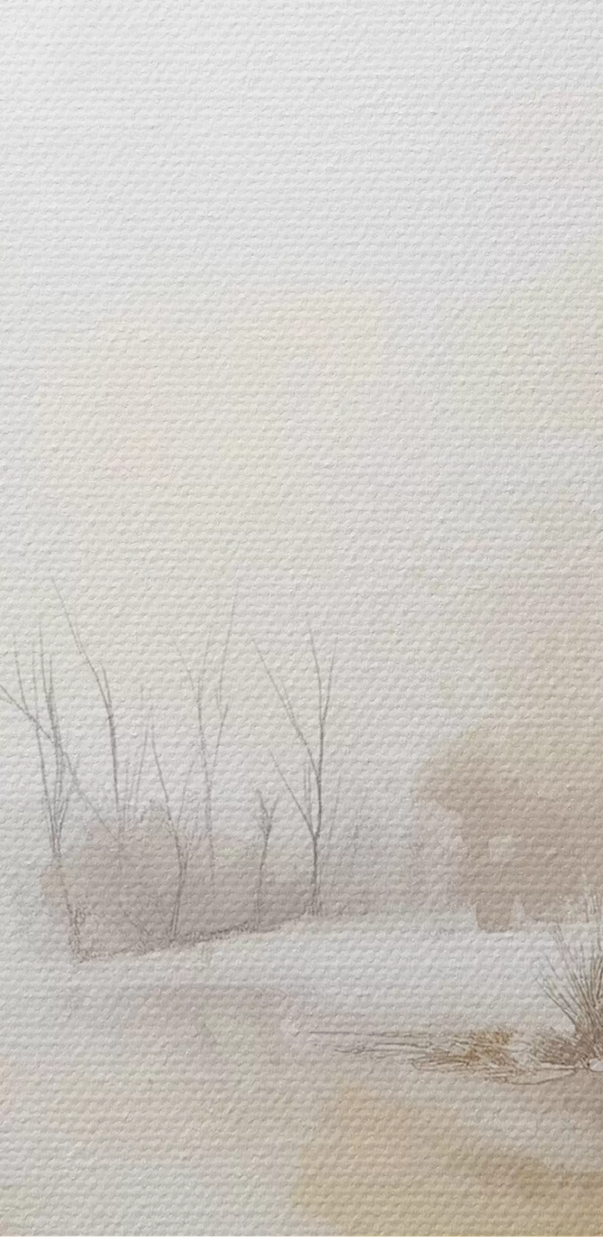 Obraz Zimná krajina, rieka a stromy, akvarel, béžové farby Nr. s42376