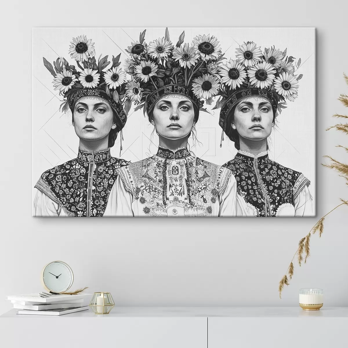 Obraz Ukrajinské ženy v etnických záveroch s kvetinovými vencami Nr. s42379