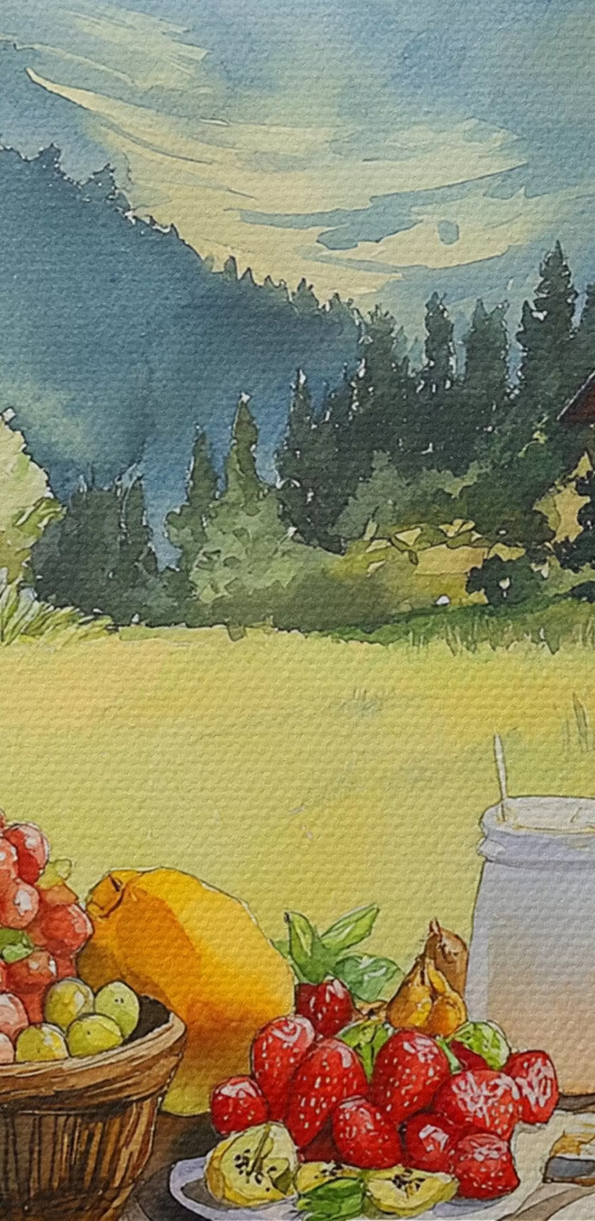 Obraz Horská krajina, letná lúka, drevenice, raňajky Nr. s42425